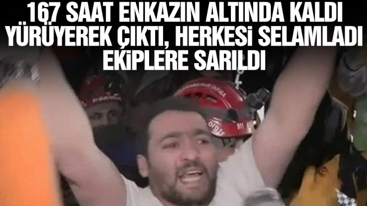 Hatay'ın Antakya ilçesinde depremin 167. saatinde inanç, umut ve azim dolu bir mucize gerçekleşti. Depremzede ekiplerin kendisine açtığı alandan günler sonra yürüyerek çıktı, selam verdi. Depremzedenin kurtarılma anları sonrası büyük bir sevinç yaşandı. Arama-kurtarma ekipleri mutluluk gözyaşları döktü.