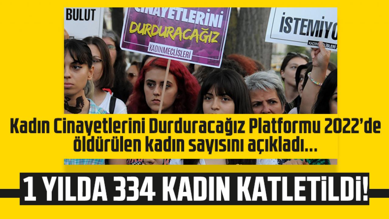 Kadın Cinayetlerini Durduracağız Platformu 2022 yılında 334 kadının erkekler tarafından öldürüldüğünü, 245 kadının ise şüpheli şekilde ölü bulunduğunu açıkladı. Platform tarafından yayınlanan raporda kadın cinayetinin en çok işlendiği il İstanbul oldu. Rapora göre 154 kadın kocası tarafından öldürüldü.