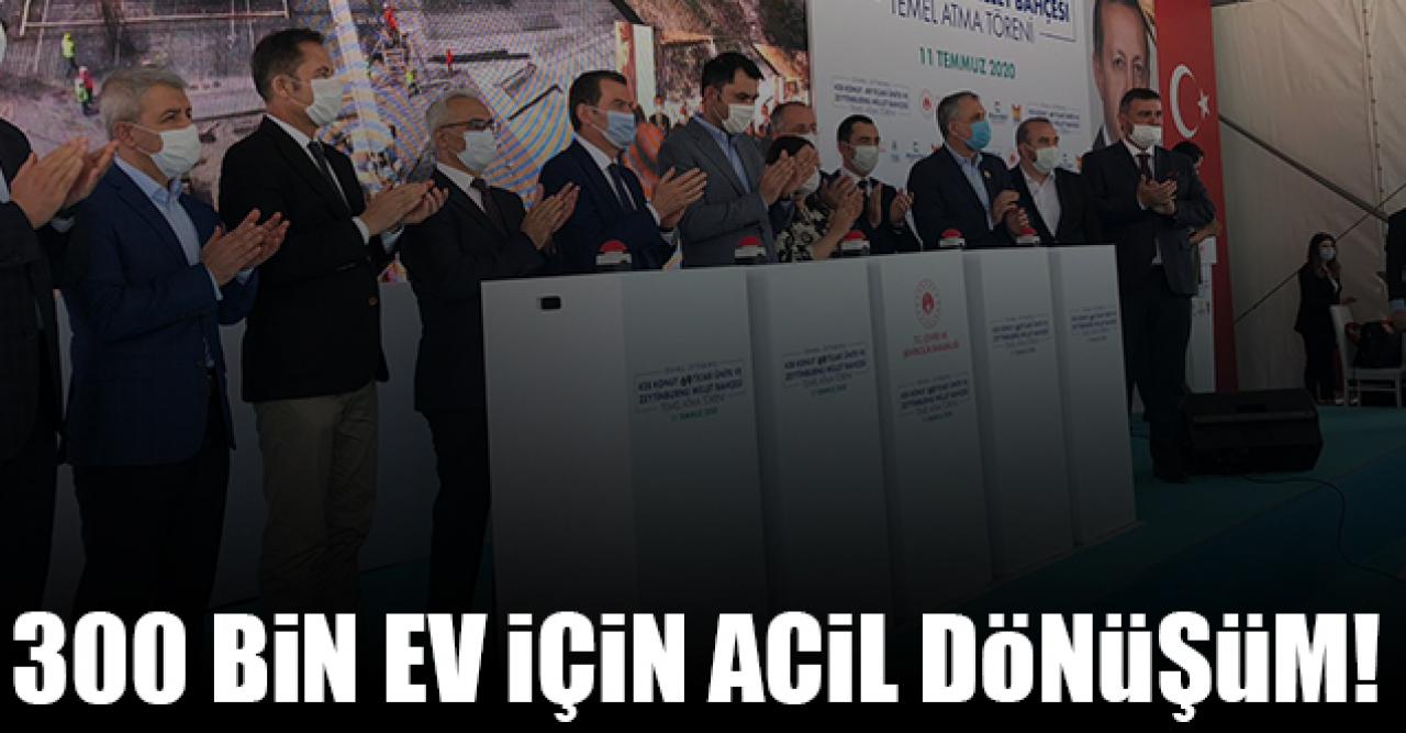 Çevre ve Şehircilik Bakanı Murat Kurum, "İstanbul'da 300 bin konutun acil bir şekilde dönüştürülmesi hedefi koyduk. 2023 yılında tamamlamak istiyoruz. İstanbul'umuzda 39 ilçede 64 riskli alanda kentsel dönüşüm konutları yükseliyor" dedi