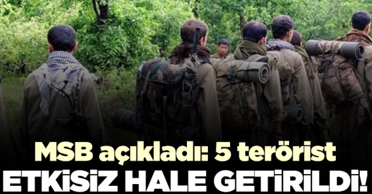 Barış Pınarı bölgesindeki huzur ve güven ortamını bozmak maksadıyla saldırı girişiminde bulunan 5 PKK/YPG’li terörist, ateş destek vasıtaları ile etkisiz hale getirildi. Bölgedeki barış ve huzurun sürdürülmesi için her türlü tedbir alınmaya devam edilecek.