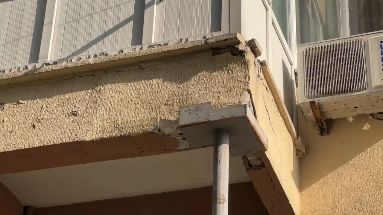 Zaman içerisinde tahrip olan kaçak balkon ve bir üst katındaki balkona metal boru ile destek yapıldı. Yıldız Teknik Üniversitesi İnşaat Mühendisliği Bölüm Başkan Yardımcısı Dr. Öğr. Üyesi Abdullah Akca, olası bir depremde binanın büyük risk altında olduğunu söyledi.
