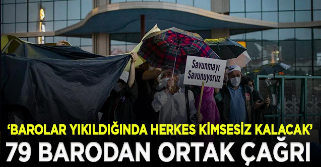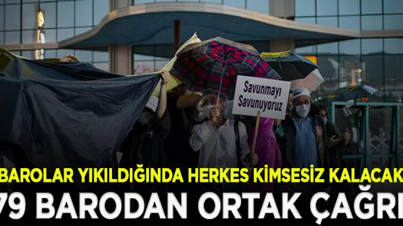 İktidarın, baroların yapısını ve seçim sistemini değiştirecek yasal düzenleme girişimine karşı 79 baro başkanlığı, gazetelere ilan vererek vatandaştan destek istedi. “Bu ülke üzerinde yaşayan, hukuk devletine ve insan onuruna inanan her vatandaşa tarihi bir çağrıdır” diyen 79 baro,"Baroların bölünmesi, parçalanması, bağımsız savunma yerine siyasete ya da başka ortaklaşmalara dayalı, sesi kısık, cübbesi düğmeli topluluklar yaratacaktır” görüşünü dile getirdi.