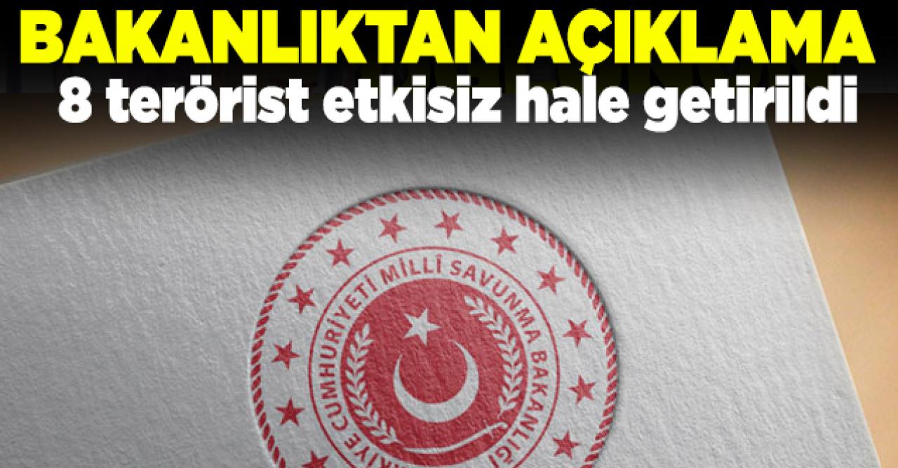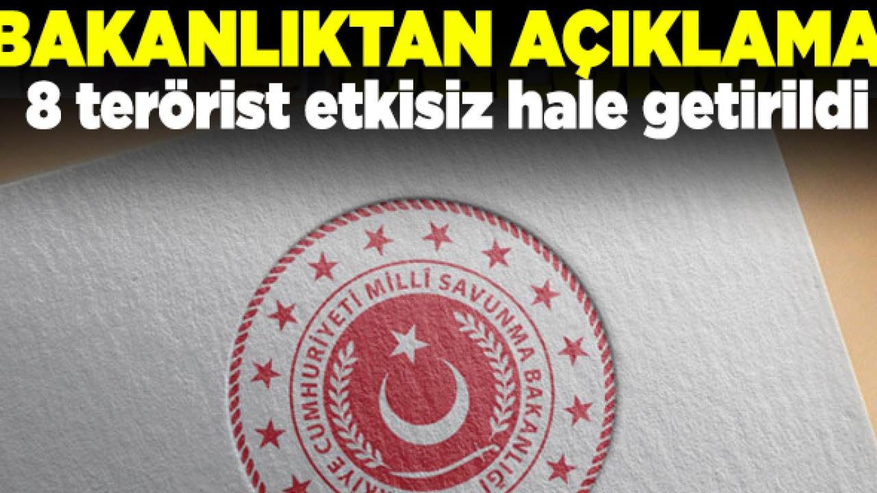 Milli Savunma Bakanlığı yaptığı açıklamada 8 PKK'lı teröristin etkisiz hale getirildiğini duyurdu.