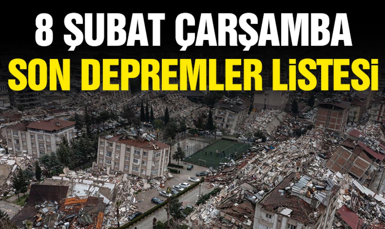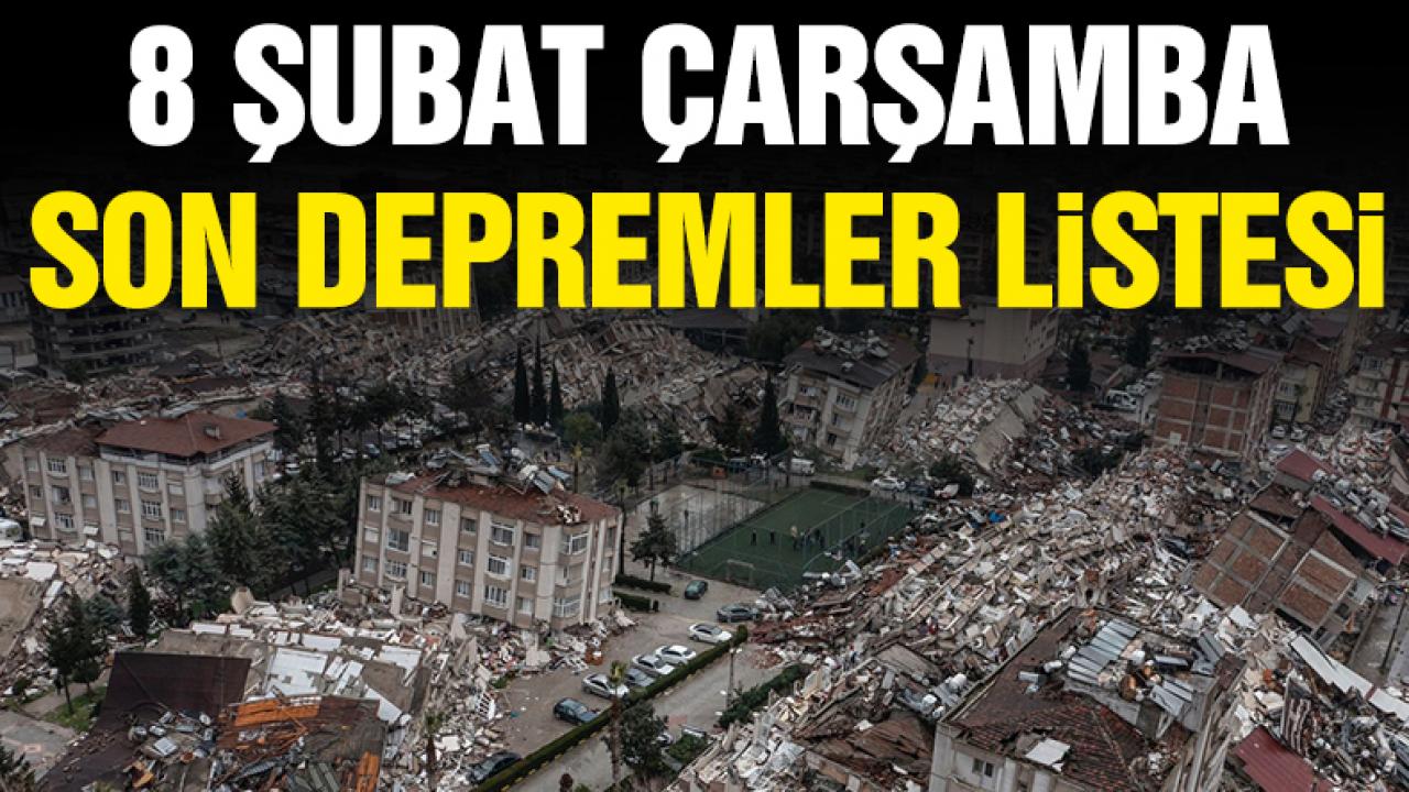 8 Şubat 2023 Çarşamba son depremler listesi
