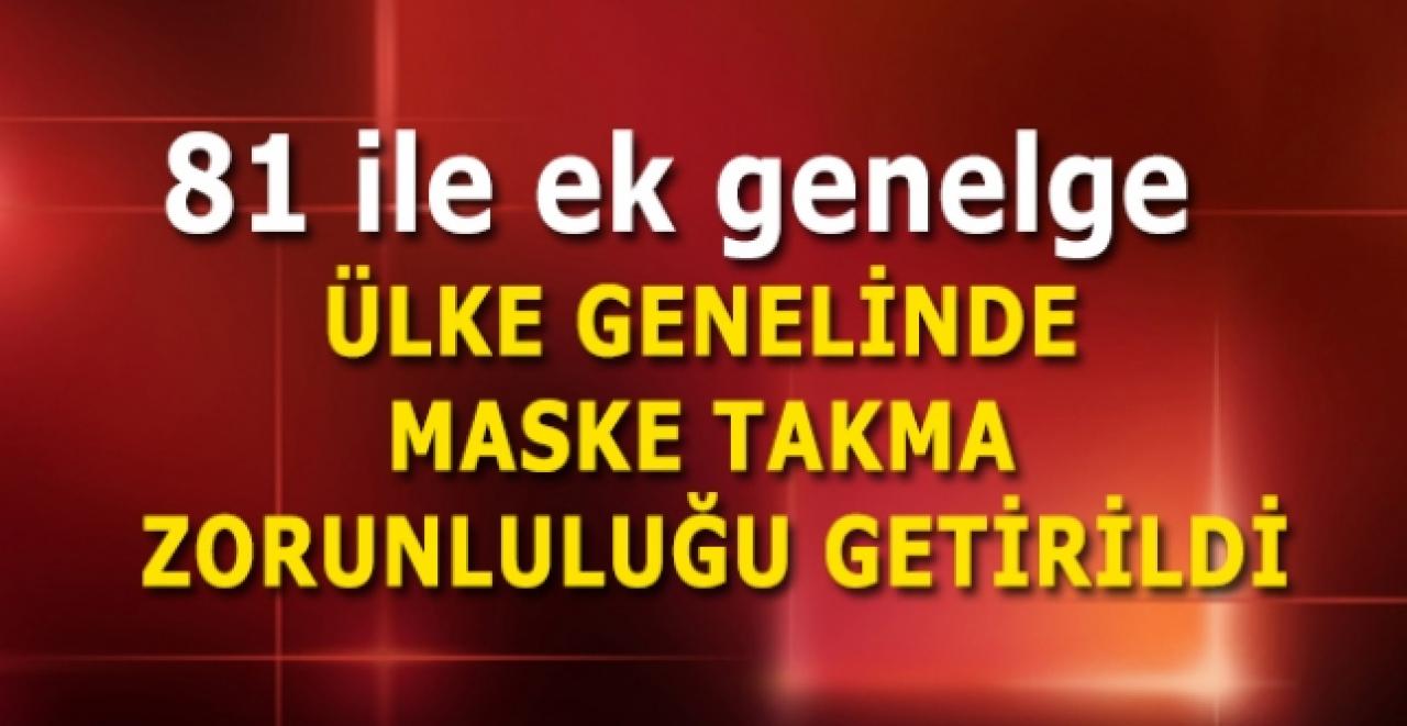 Genelgeye göre, ülke genelinde meskenler hariç olmak üzere tüm alanlarda maske takmak zorunlu olacak