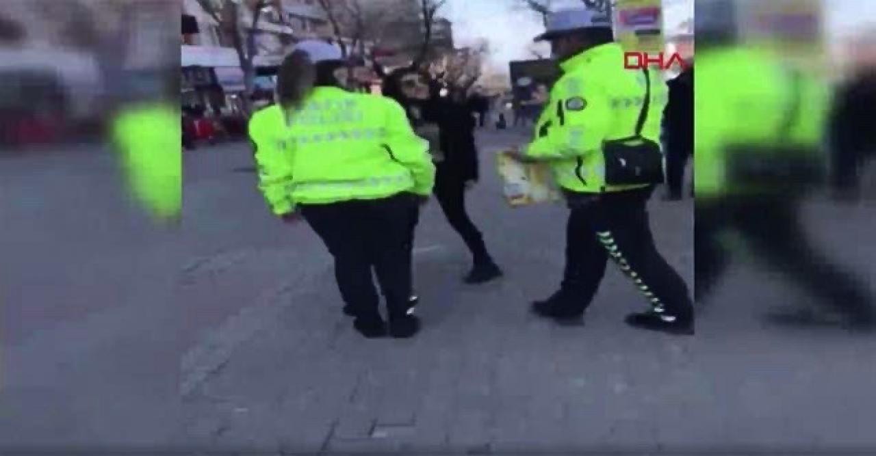 Ekipler maske takmamak için direnen kadını ikna edemeyince, kadın polis otosuna bindirilerek maske takmadığı için 3 bin 150 TL cezai işlem uygulandı.