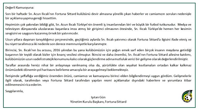 Acun Ilıcalı'nın Hollanda Eredivisie ekiplerinden Fortuna Sittard'ı satın alacağı iddiası uzun süredir gündemdeki yerini korurken, kulüp başkanı Işıtan Gün iddiaları doğrulayarak, Acun Ilıcalı'nın kulübü satın almak istediğini belirtti.