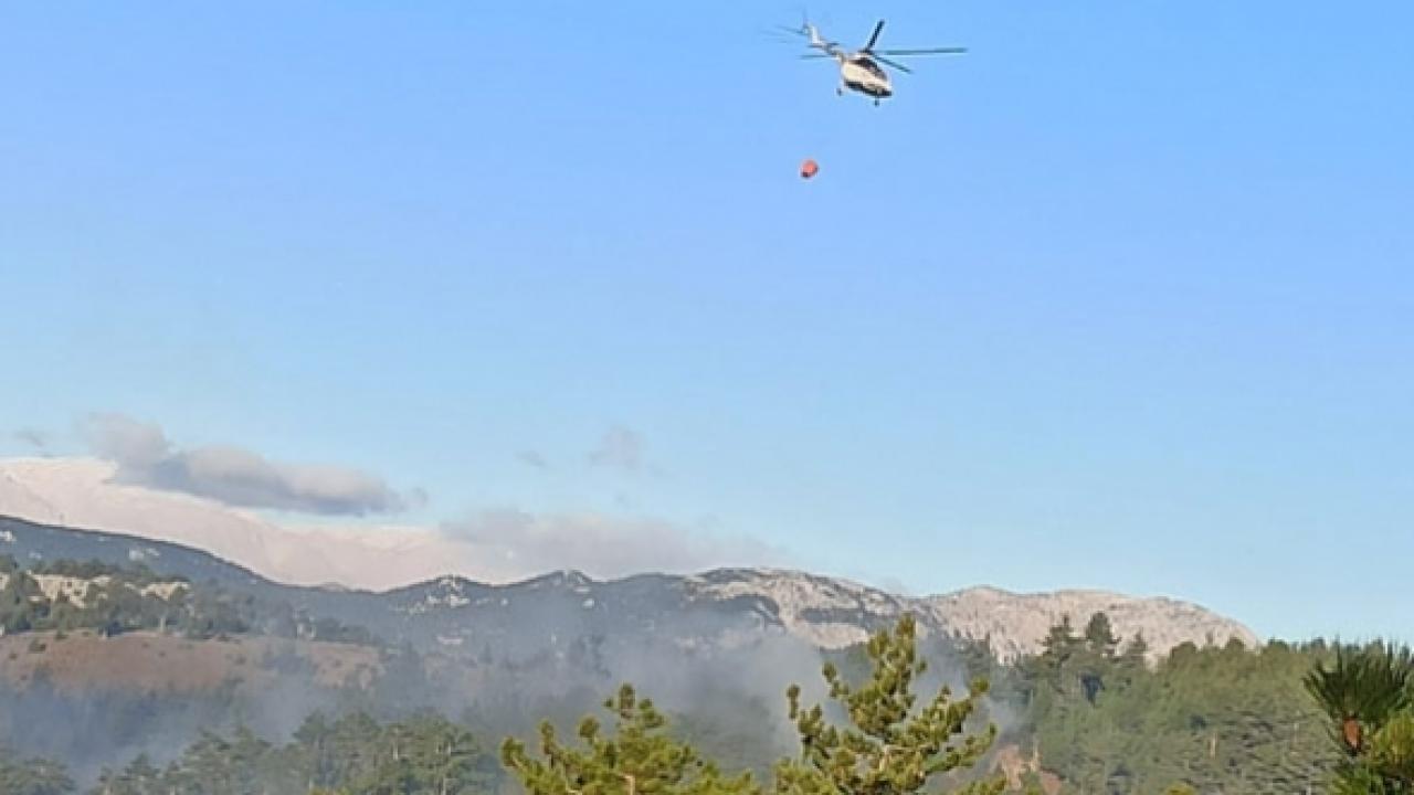 İlçeye bağlı Konakkuran Mahallesi’nde gece saatlerinde bilinmeyen nedenle yangın çıktı. İhbar üzerine bölgeye çok sayıda arazöz ve yangın söndürme ekibi sevk edildi. Sabah saatlerinde ise helikopterle havadan müdahale başladı. Yangına müdahale eden ekiplerin çalışmaları sürüyor. DHA
