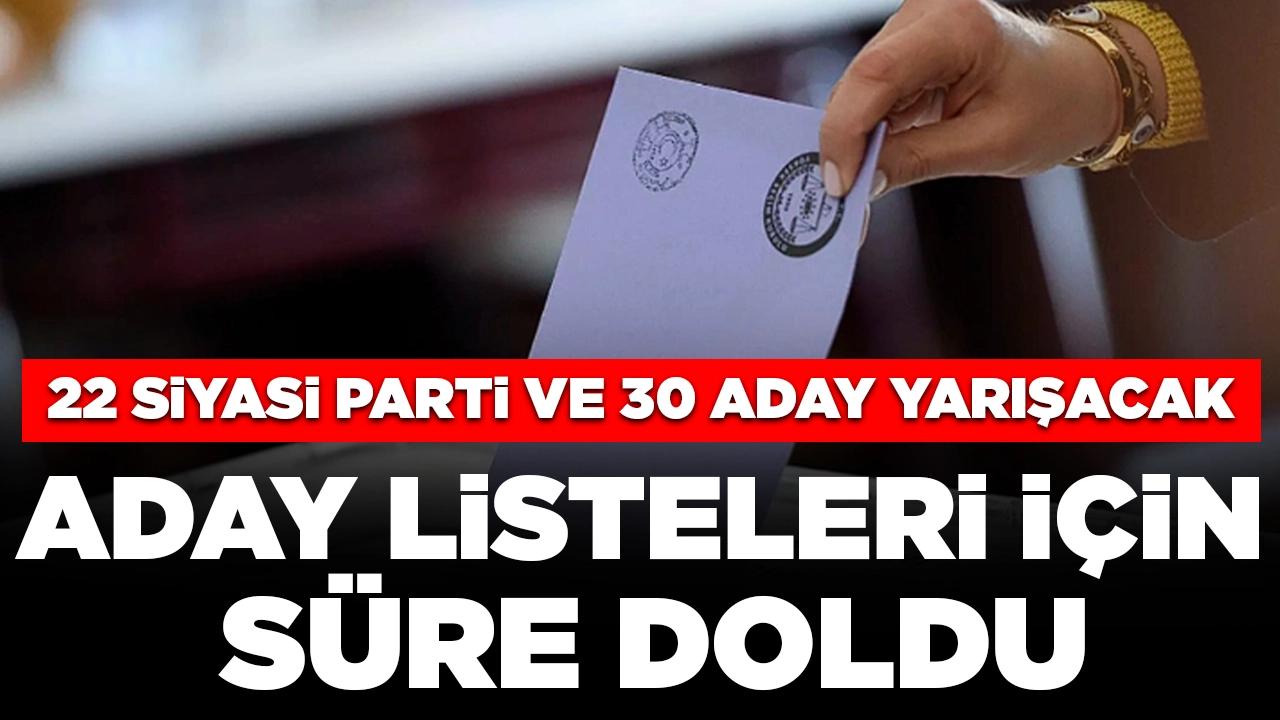 İBB Başkanlığı için 22 siyasi parti adayı ile 30 bağımsız aday yarışacak. 31 Mart'ta yapılacak olana Mahalli İdareler Seçimleri için siyasi partilerin aday listelerini teslim etmesi için verilen süre saat 17.00 itibariyle doldu.