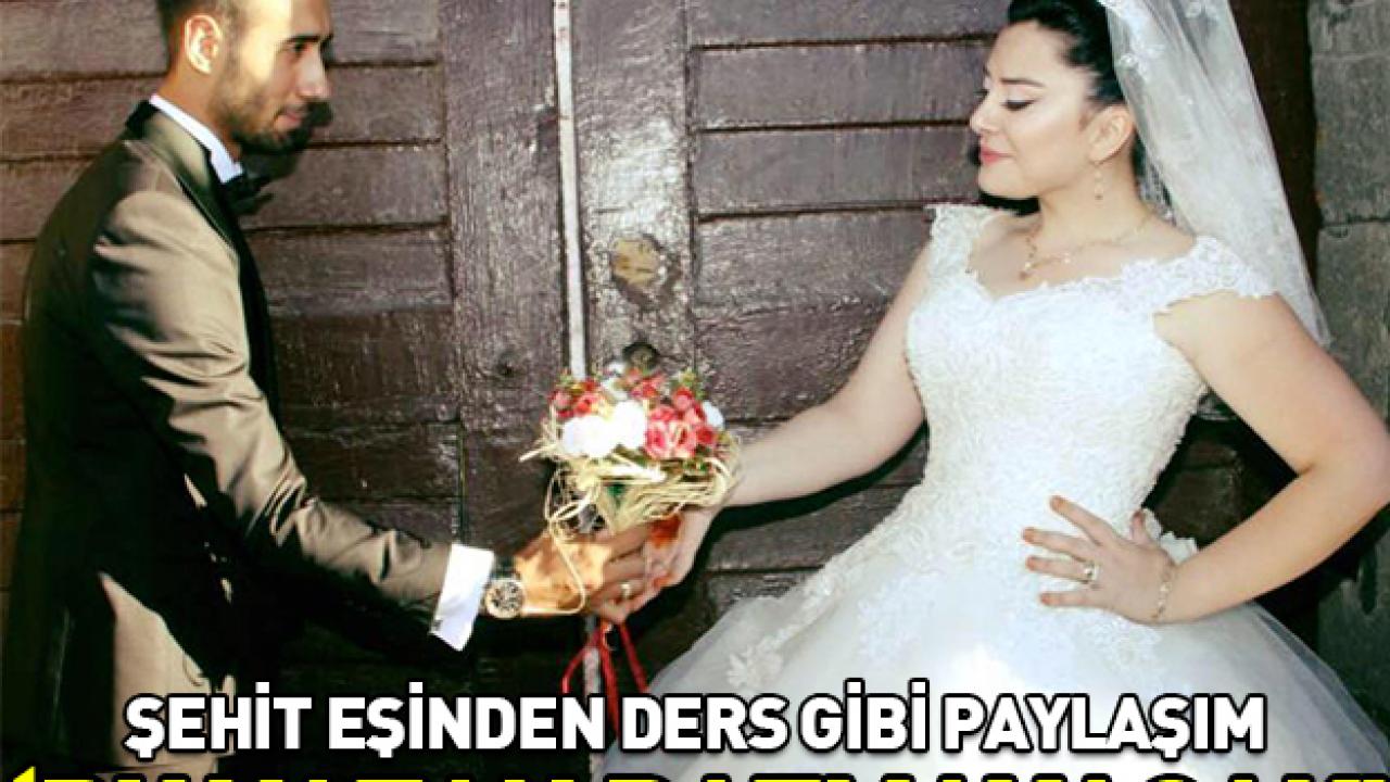 SABAH'ın haberine göre, Zeytin Dalı Harekâtında şehit düşen Uzman Çavuş Mehmet Muratdağı'nın 1 yıllık eşi Birgül Muratdağı, sosyal medya hesabından, "Sahipsiz olan vatanın batması haktır. Sen sahip çıkarsan, Bu VATAN batmayacak" dizelerini paylaştı.