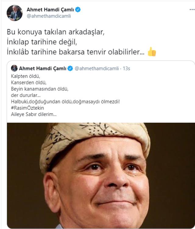 Olayın sosyal medyada gündem olmasından sonra Çamlı yeni bir paylaşım yaptı ve "Bu konuya takılan arkadaşlar, İnkılap tarihine değil, İnkılab tarihine bakarsa tenvir olabilirler" dedi.
