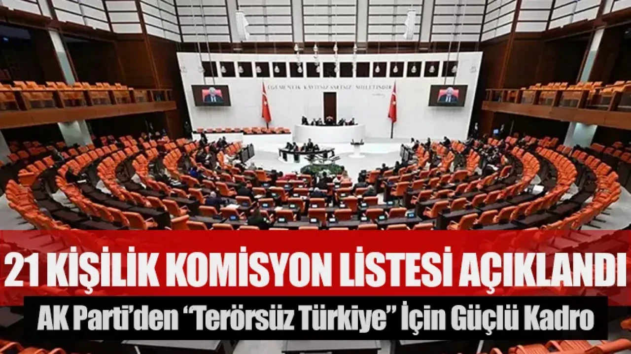 Türkiye’nin terörle mücadelesinde yeni bir dönemin kapısını aralayan “Terörsüz Türkiye Komisyonu”nda AK Parti’nin temsil edeceği isimler belli oldu. AK Parti Grup Başkanı Abdullah Güler, ağırlıklı olarak hukukçu ve toplum bilimcilerden oluşan 21 kişilik listeyi TBMM Başkanlığı’na sundu.