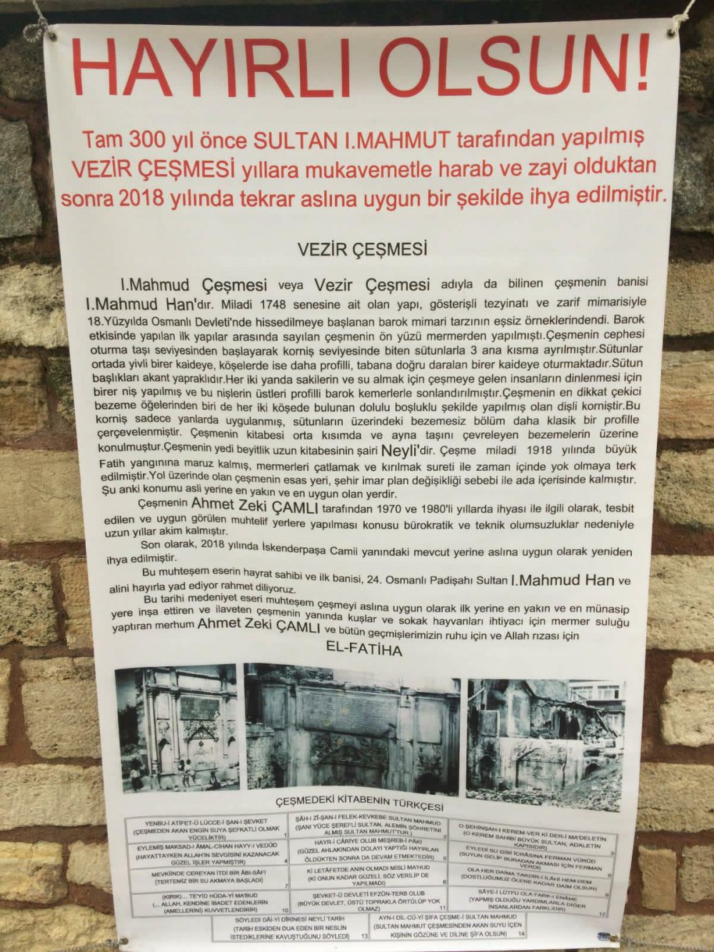Karar'da yer alan habere göre; Yeni kitabenin sekizinci satırındaki amatörlük dikkat çekerken, çeşmenin duvarına asılan metinde Çamlı’nın babasının adının geçtiği yer gizlendi. Kitabenin orijinalinin nerede olduğu ise bilinmiyor.