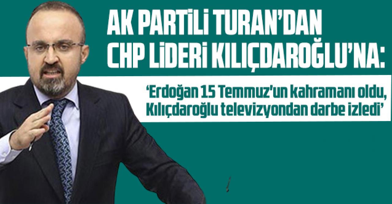 CHP lideri Kılıçdaroğlu'nu daha sağduyulu ve birleştirici bir dil kullanmaya davet eden Turan, "Sayın Erdoğan, 15 Temmuz'un kahramanı oldu, Kılıçdaroğlu 15 Temmuz akşamı kaçacak yer aradı kahve içerek, televizyondan darbe izledi. Darbenin durdurulmasında en büyük paya sahip olan kişiyle darbeden korkan bir kişinin karşılıklı olarak ne işi var televizyonda. O yüzden bu iddiasının afaki olduğunu ifade etmek isterim. Ama madem Kılıçdaroğlu bu kadar ümitli, bu çağrıyı ben yapıyorum. Sayın Kılıçdaroğlu istiyorsa ben hazırım, istediği gün, istediği saatte, istediği televizyonda hatta CHP genel merkezinde, istediği gazetecilerle beraber bu daveti göğüslüyorum, karşılamak istiyorum. Kılıçdaroğlu’na soralım, hala partinizdeki tecavüze tacize sessiz kalacak mısınız? Hala 'PYD terör örgütü değil' diyor musunuz? Hala 'Atatürk demem Mustafa Kemal derim' diyen il başkanlarına sahip çıkacak mısınız? gibi birçok soruyu milletimizin huzurunda sorma imkanımız olur. Biz Kılıçdaroğluna hak ettiği cevabı milletimize saygımızdan vermemeyi ya da daha az vermeyi tercih ediyoruz. Bu tarzın tarz olmadığını, Türkiye’nin 90 yıllık partisine yakışmadığını ifade ediyoruz, kendisini daha sağduyulu, daha milletini, birliğimizi pekiştiren bir dile davet ediyorum" ifadelerini kullandı.
