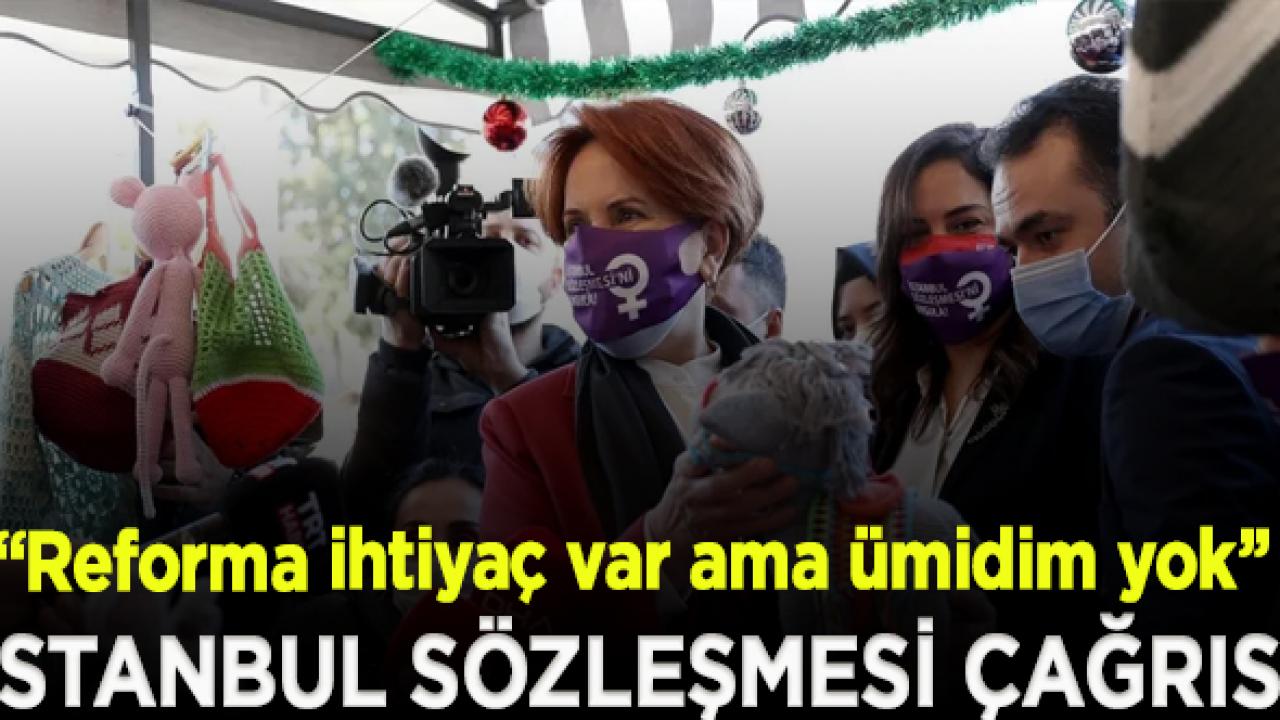 Geçmişte İstanbul Sözleşmesi üzerinden tartışmaların da yaşandığını hatırlatan Akşener, "Bugün burada sizlerin huzurunda, sizlerin aracılığıyla İstanbul Sözleşmesi üzerinden kavgayı bir kenara koyup, İstanbul Sözleşmesi hükümlerinin uygulamaya derhal konulmasını talep ediyorum. Katledilen bütün kadınlarımıza huzurunuzda rahmet diliyorum ama onun ötesinde onların manevi huzurunda her birinden, hiç parmağını kıpırdatmayan bu adamlar adına özür diliyorum" ifadelerini kullandı.