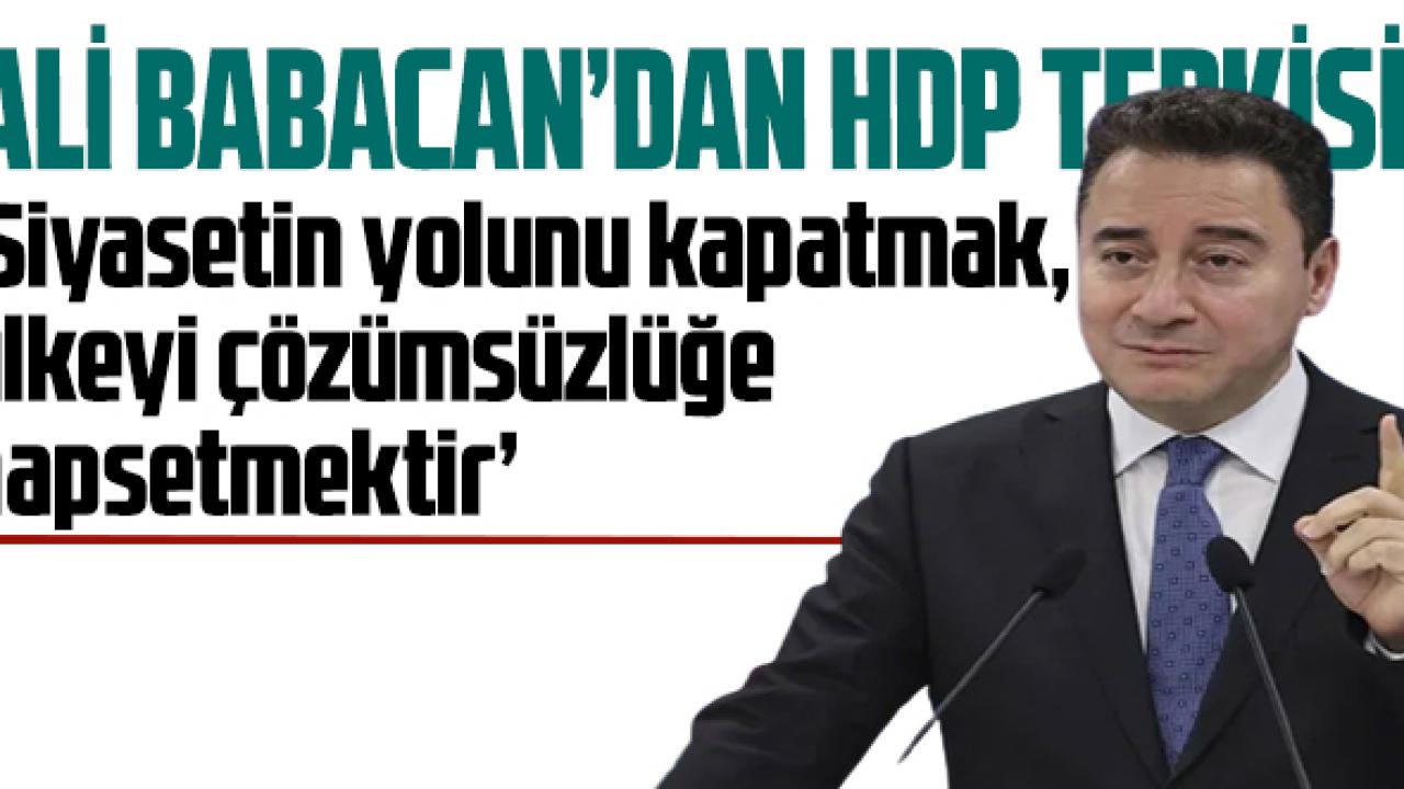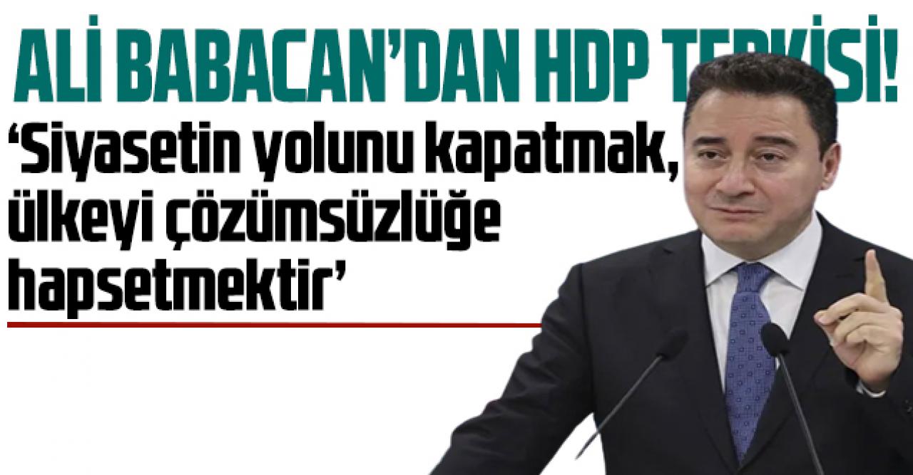 DEVA Partisi Genel Başkanı Ali Babacan, Twitter hesabından yaptığı bir paylaşımla, Yargıtay Cumhuriyet Başsavcılığı tarafından Anayasa Mahkemesi'ne HDP'nin kapatılma davası açılmasına tepki gösterdi. Açıklamasında, 'Siyasi meşruiyet toplum desteği ile sağlanır' diyen Babacan, '6 milyon oy alan bir partiyi yargı yoluyla engellemeye çalışmak oy veren milletimize saygısızlıktır' ifadelerini kullandı.