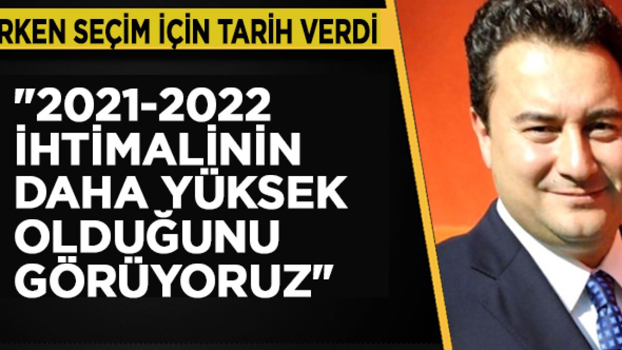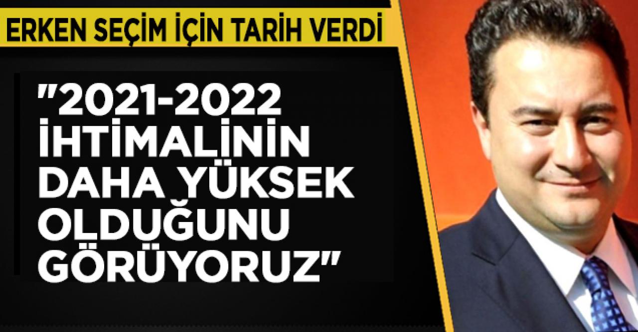 Babacan, "Bu sene Ekim-Kasım gibi erken seçim olma ihtimali ne kadar zayıfsa Haziran 2023'e kadar sistemin dayanması ihtimali da o kadar zayıf. Biz 2021-22'de olası seçim için ihtimalinin daha yüksek olduğunu görüyoruz" dedi ve ekledi: