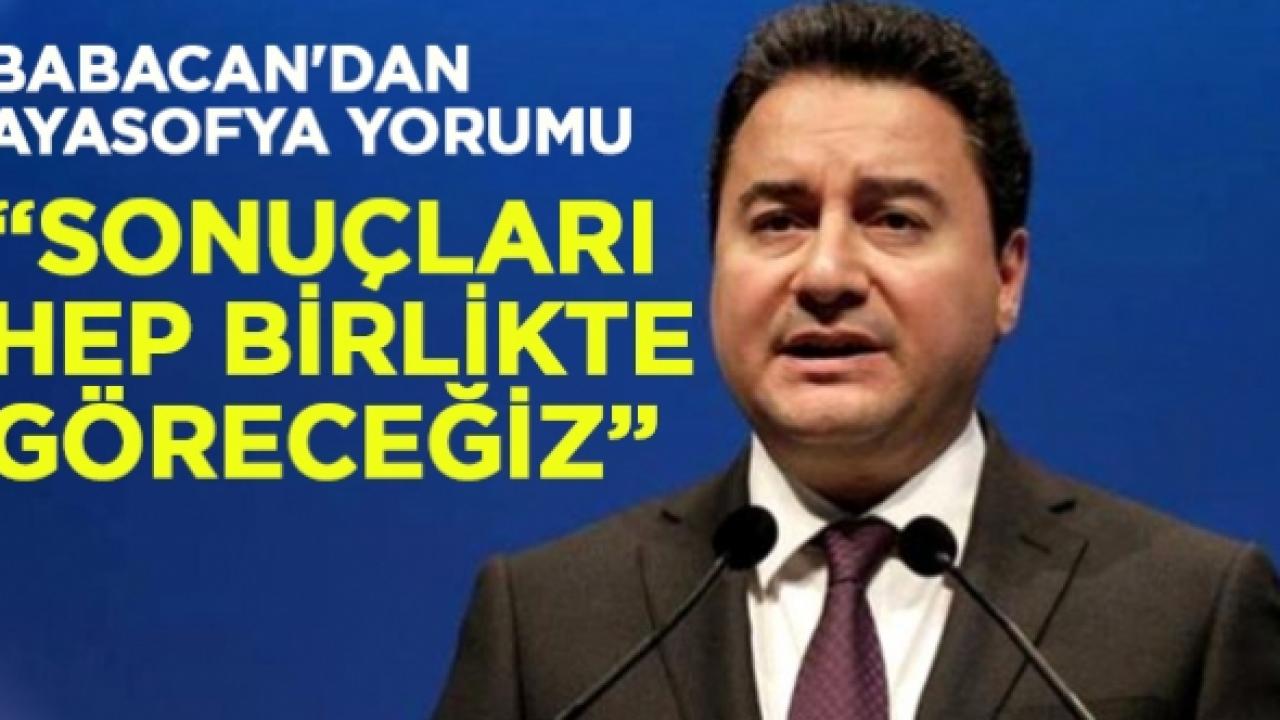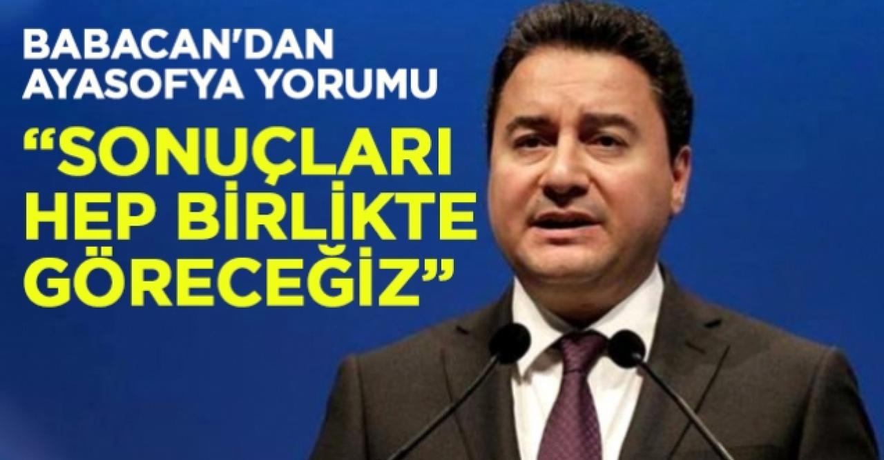 Demokrasi ve Atılım Partisi (DEVA) Genel Başkanı Ali Babacan, Ayasofya'nın ibadete açılması konusunda, "Yöneticilerin içerideki ve dışarıdaki yansımalarını, sonuçlarını hesap ederek bu kararı aldıklarını ümit ediyorum. Sonuçlarını hep birlikte göreceğiz. Ayasofya'nın ibadete açılmasının hayırlı olmasını diliyorum" dedi.Babacan, parti genel merkezinde bir araya geldiği gazetecilere değerlendirmelerde bulundu, soruları yanıtladı.