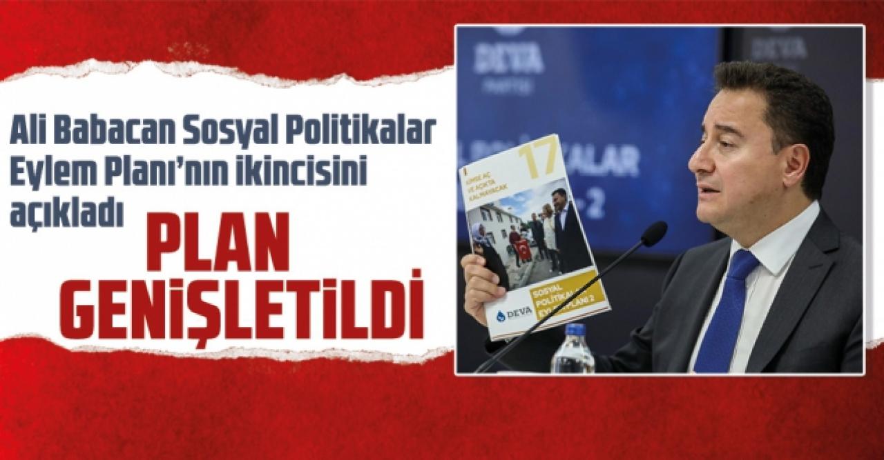 DEVA Partisi Genel Başkanı Ali Babacan, partisinin genel merkezinde Sosyal Politikalar Eylem Planı’nın ikincisini açıkladı. Böylece DEVA Partisi’nin eylem planlarının sayısı 17’ye yükseldi. Planın ayrıntılarını partinin Sosyal Politikalar Başkanı Selma Aliye Kavaf’ın anlattı. Sosyal Politikalar Eylem Planı’nın ilkini 14 Eylül 2021’de açıklayan DEVA Partisi, ihtiyacı olan hanelere asgari gelir desteği verileceğini, bebeklerin 2 yaşına kadar mama ve bez gibi tüm ihtiyaçlarının karşılanacağını, yaşlı başım sigortasının uygulanacağını taahhüt etmişti. Eylem planı; evde bakım aylığı alanların genel sağlık sigortası primlerinin devlet tarafından ödenip geçmiş borçların silinmesinin, esnek çalışanların güvenceye kavuşturulmasının, işsizlik ödeneğine ayrılan kaynağın büyütülmesinin, emekli aylıklarında satın alma gücünün korunmasının, engelli istihdamının ve maaşlarının artırılmasının da yer aldığı toplam 44 maddeden oluşuyordu.