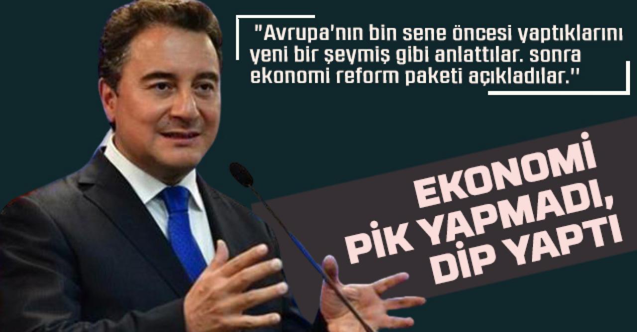 Türkiye'de DEVA öncesi ve DEVA sonrası siyasetin farklı olacağını belirten Ali Babacan, iktidarın milleti borçlandırdığını dile getirdi.Hükümetin açıkladığı insan hakları paketini de eleştiren Babacan, "Avrupa'nın bin sene öncesi yaptıklarını yeni bir şeymiş gibi anlattılar. Sonra, Ekonomi, Son Dakika Ekonomi Haberleri, Ekonomi Son Dakika'>ekonomi reform paketi açıkladılar. Sayın Erdoğan ekonomi uçuyor pik yapıyor diyor, sürekli paket açıklayıp duruyor. Biz söyledik ekonomi pik yapmadı, dip yaptı görmüyor musunuz? Yüzü gülen esnaf yok. Maliyetler artmış ama vatandaşların satın alma gücü artmamış. Ama hükümet ekonomi pik yapmış diyor" ifadelerini kullandı.