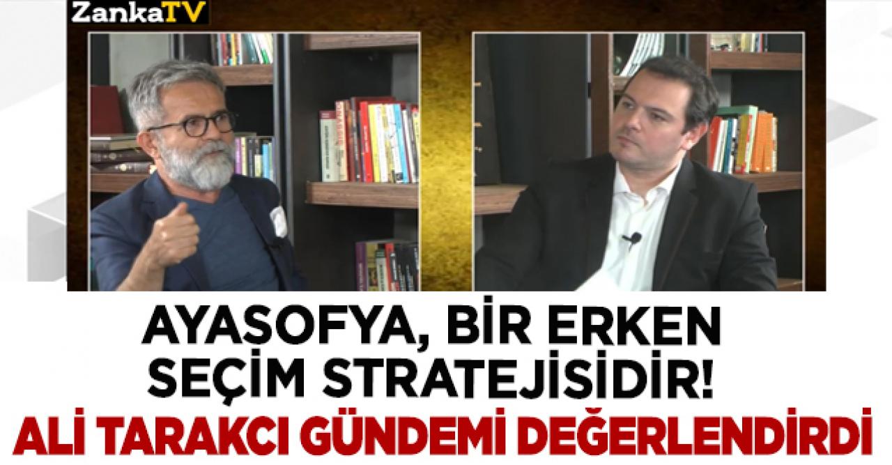 Ali Tarakcı, Cumhurbaşkanı Recep Tayyip Erdoğan'ın Ayasofya'nın ibadete açılacağının duyurması üzerine, Erdoğan'ın 2019'da bir mitingte, kendisine Ayasofya ile ilgili sloganlar atılırken, bu oyunlara gelmeyelim diye tepki gösterdiğini hatırlattı. Bunun bir erken seçim mesajı olduğuna dikkat çeken Tarakcı, çarpıcı yorumlarda bulundu.