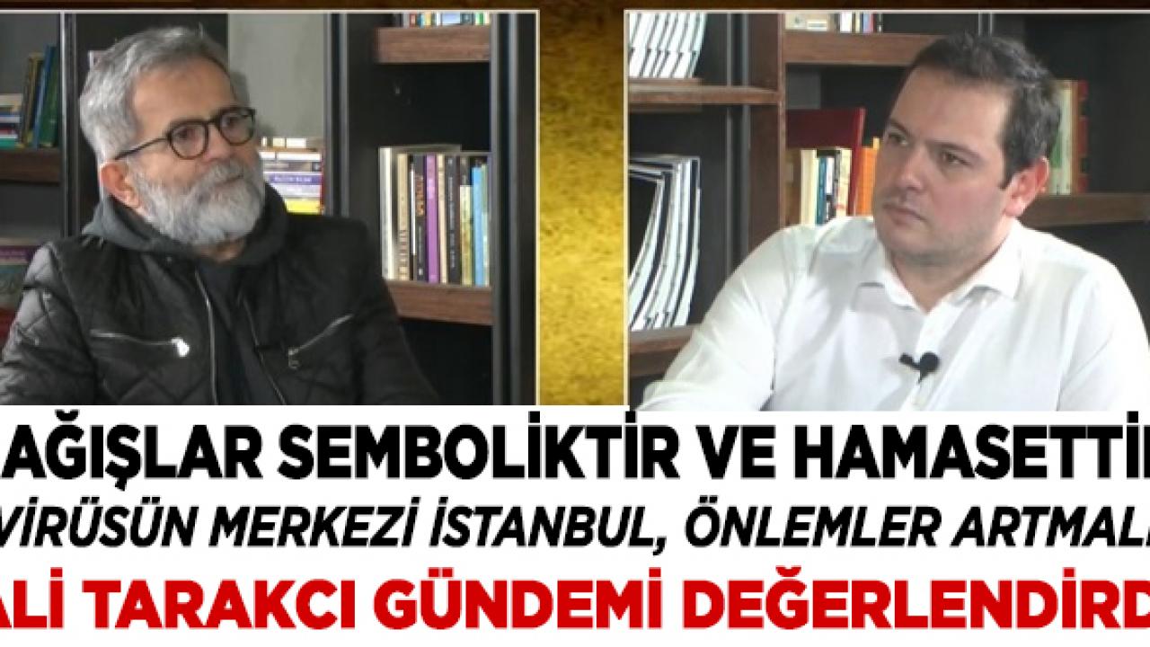 Ali Tarakcı, koronavirüs için alınan tedbirlerin açıklanmasının ardından,"Önlemler yetersiz ve zamanında alınmadı. 20 yaş altı veya 65 yaş üstü sokağa çıkma yasağı, şehirlerarası yolculuklara getirilen yasaklar neden şimdi alınıyor, daha önceden alınması gereken tedbirleri neden geç alıyoruz" diyerek tepkisini dile getirdi. Tarakcı, Türkiye'deki koronavirüs vakalarını, bağış kampanyasında toplanan paraları ve gündeme dair tüm gelişmeleri değerlendirdiği programda önemli ifadeler kullandı.