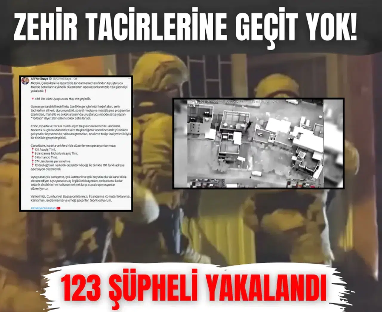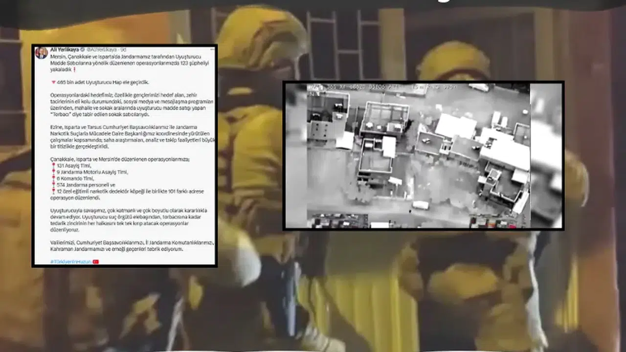 Mersin, Çanakkale ve Isparta’da düzenlenen operasyonlarda toplam 123 şüpheli gözaltına alındı, 465 bin adet uyuşturucu hap ele geçirildi. Operasyonlar, Ezine, Isparta ve Tarsus Cumhuriyet Başsavcılıkları ile Jandarma Narkotik Suçlarla Mücadele Daire Başkanlığı koordinasyonunda gerçekleştirildi.