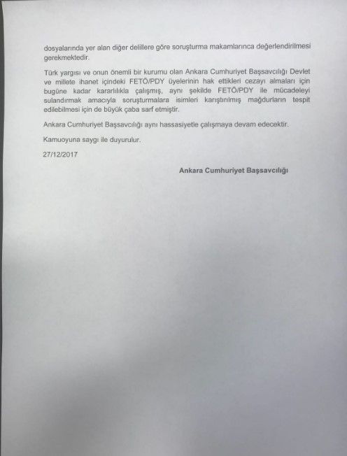 Ankara Cumhuriyet Başsavcılığı’nın açıklamasındaki ilgili bölüm şöyle: