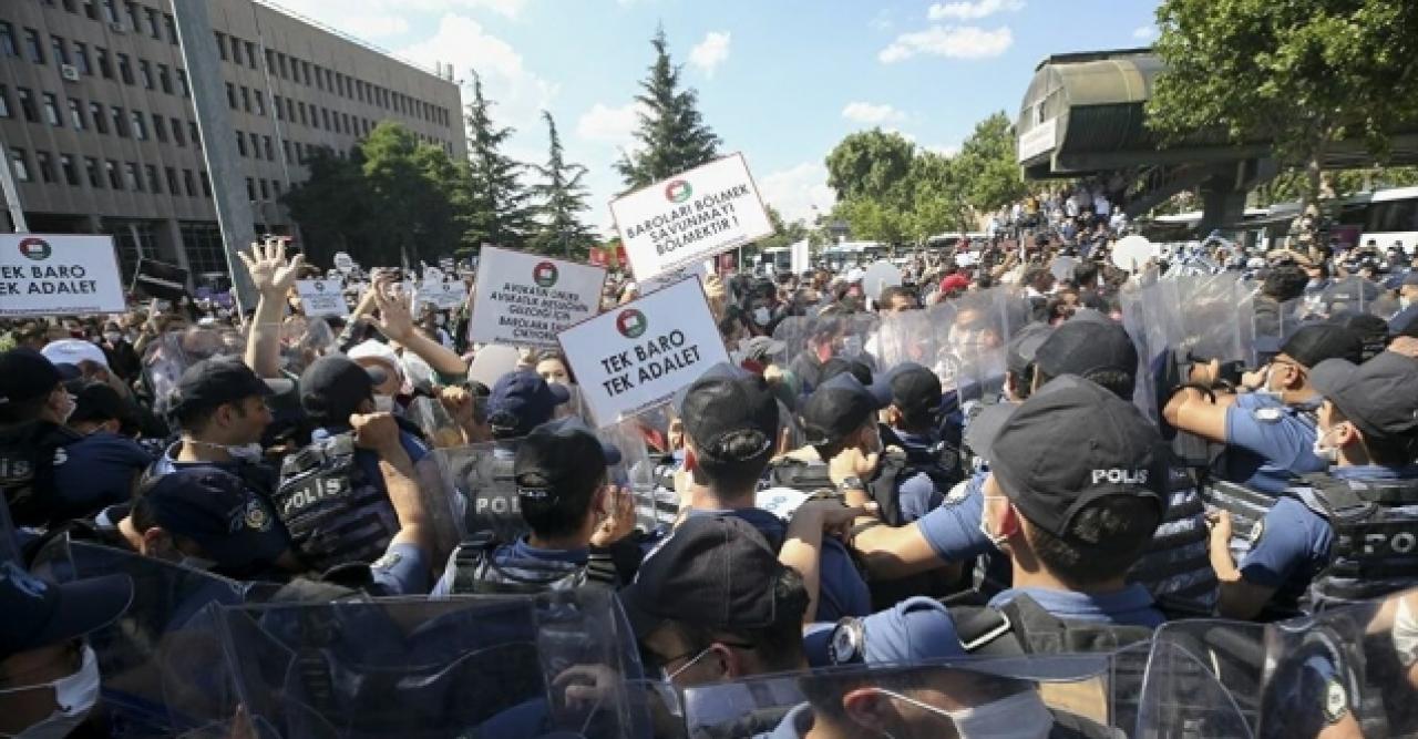 "Burada yapılan basın açıklaması sonrası toplu olarak TBMM'ye yürümek isteyen gruba eylemlerinin yasaya aykırı olduğu ifade edilmiş olup, bu esnada grup içerisinde bulunan şahıslar tarafından görevi sadece güvenliği ve düzeni sağlamak olan personelimize pankart-döviz sopaları ve akordiyon bariyerler atmak suretiyle saldırıda bulunulmuştur. Yasal mevzuatı çok iyi bilmelerine ve personelimizin iyi niyetli tüm çabalarına rağmen, marjinal grupların izinsiz gösteri-etkinliklerinde rastlanacak şekilde görevlilerimize saldırıda bulunan avukatlar hakkında savcılığa suç duyurusunda bulunulacaktır."