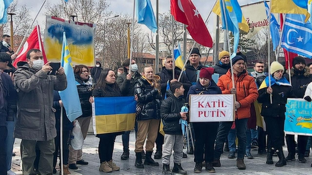 Ukrayna'nın Ankara Büyükelçiliği tarafından 'Savaşa hayır' sloganıyla Ulus'ta düzenlenen basın açıklamasına Kırım Türkleri Kültür ve Yardımlaşma Derneği de destek verdi. Ankara'da yaşayan Ukraynalılar, Ukrayna ve Türk bayrakları ile Rusya'nın ülkelerine yönelik saldırılarını protesto etti. Ellerinde 'Savaşa hayır', 'Türkiye-Ukrayna omuz omuza', 'Yaşa Türkiye yaşa Ukrayna' yazılı dövizler bulunan grup, 'Türkiye, Ukrayna birlikte geleceğe' yazılı pankart açıp sloganlar attı.