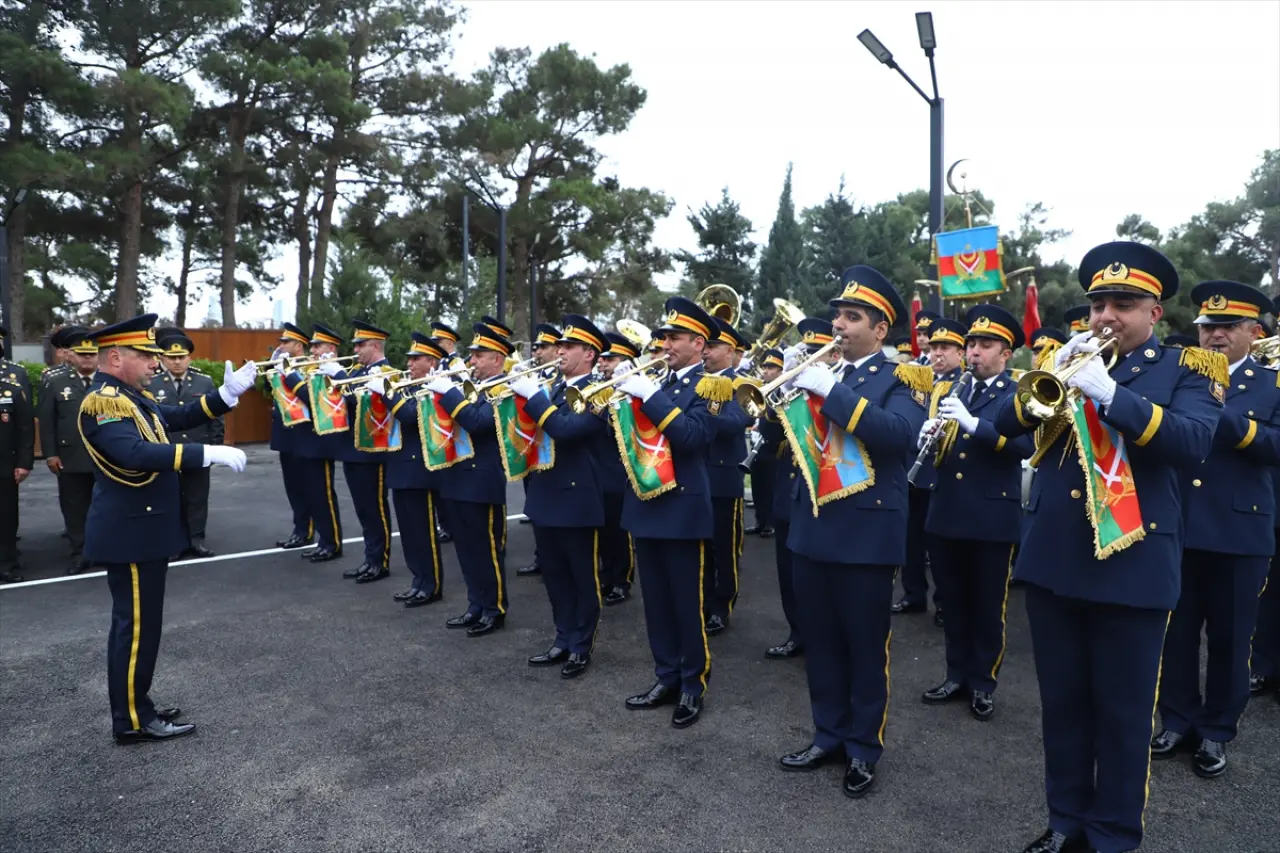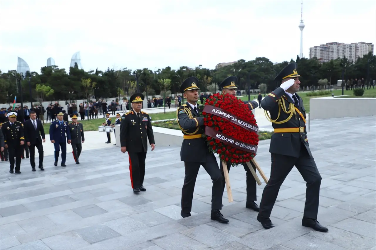 Savunma Bakanı Orgeneral Zakir Hasanov ve komuta heyeti de Askeri Şehitlik’te düzenlenen anma programına katıldı. Törende Azerbaycan Milli Marşı okundu.