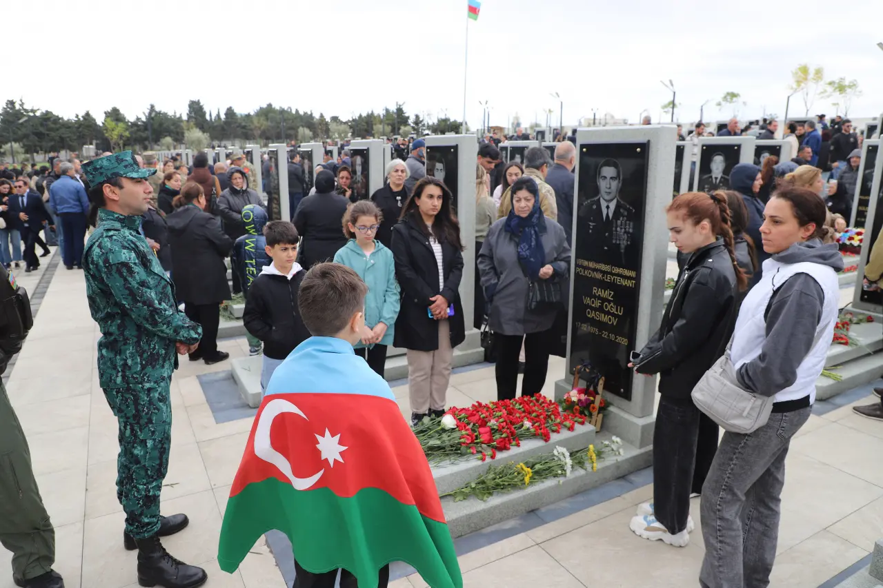 Başkent Bakü’deki Askeri Şehitlik başta olmak üzere tüm şehirlerde vatandaşlar şehit mezarlarını ziyaret ederek çiçekler bıraktı.