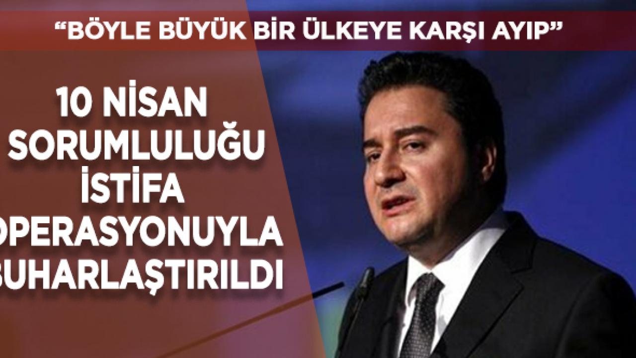 Babacan, İçişleri Bakanı'nın istifası ile ilgili "10 Nisan sorumluluğu operasyonla buharlaştırıldı. Böyle büyük bir ülkeye karşı ayıp" yorumunda bulundu. Babacan şöyle konuştu: