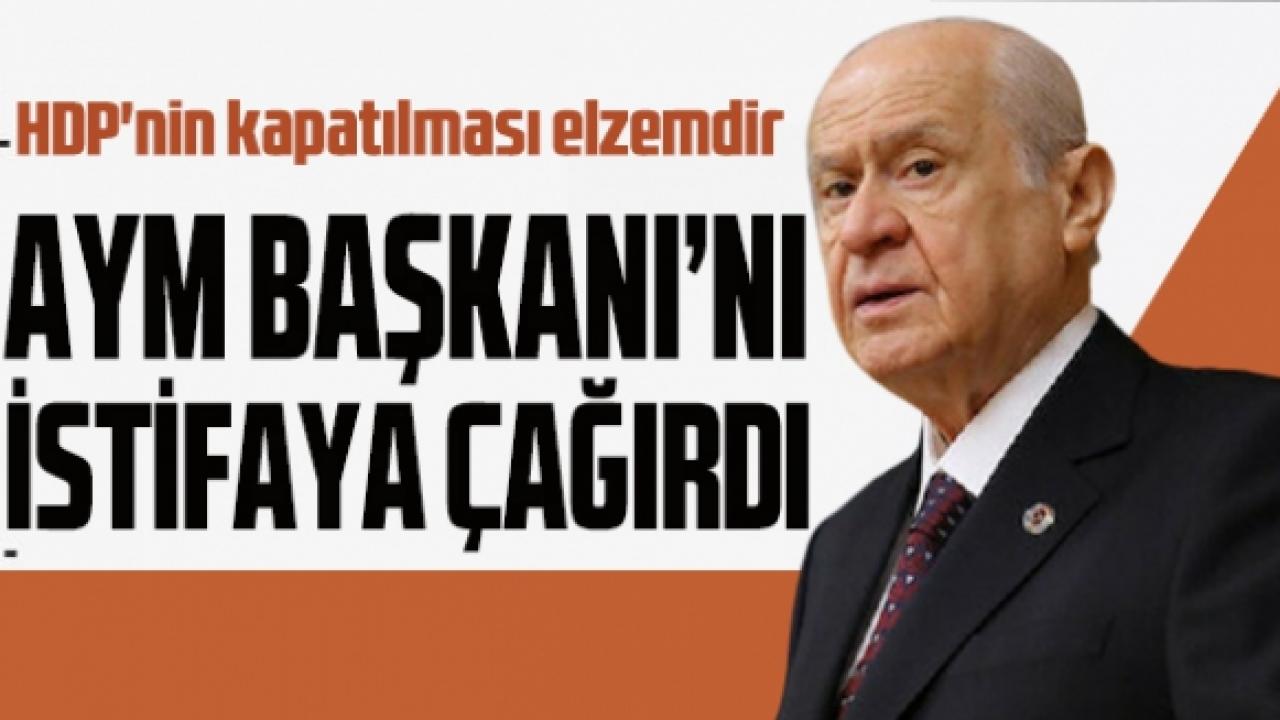 Bahçeli "Anayasa Mahkemesi'nin bir kereye mahsus kabul edilen geçici 20'nci maddeyi yanlış yorumladığı açıktır. Ne hikmetse hak ihlalleri hep şaibeli olan isimlerle ilgili verilmektedir. Aynı mahkeme Can Dündar, terörist Demirtaş hakkında hak ihlali kararı vermiştir. Osman Kavala'nın tutuklanmasının hukuki olmadığı gerekçesiyle ihlal kararını oybirliğiyle kabul etmiştir. Milletin haklarını hiç hesaba katmadığı görülmektedir. Bu AYM kimse hizmet etmektedir, kimin mahkemesidir, hak konusu sırf Türkiye'nin Anayasal düzenini bozanlar için mi geçerlidir? Bir teröristin ne hakkı olacaktır ki AYM buna çanak tutsun. AYM milletin mahkemesi olmayacaksa, Türkiye'nin egemenlik ve tarihsel haklarını çiğneyenlere destek vemreyi sürdürecekse kendisini feshetsin, başındaki zat da istifa etsin." diye konuştu.