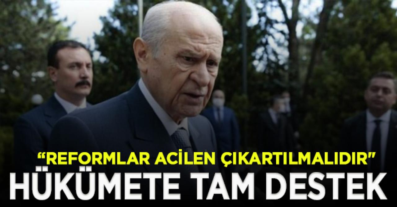 MHP Genel Başkanı Devlet Bahçeli, Siyasi Partiler Kanunu'yla ilgili tartışmalara ilişkin, "Son gelişmeleri dikkate aldığımız vakit anlaşılıyor ki bu reformlar acilen çıkartılmalıdır" dedi.