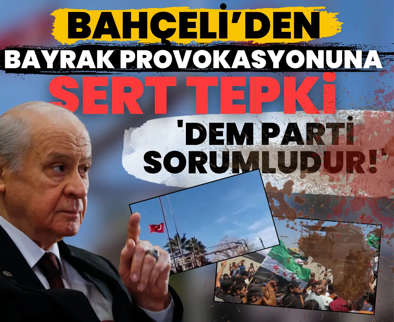 MHP Genel Başkanı Devlet Bahçeli, Mardin’in Nusaybin ilçesinde sınır hattında yaşanan bayrak indirme provokasyonu üzerine çok sert açıklamalarda bulundu. Suriye tarafından gelen provokasyona karşı milli hassasiyetle konuşan Bahçeli, DEM Parti’yi açık bir dille sorumlu tuttu.