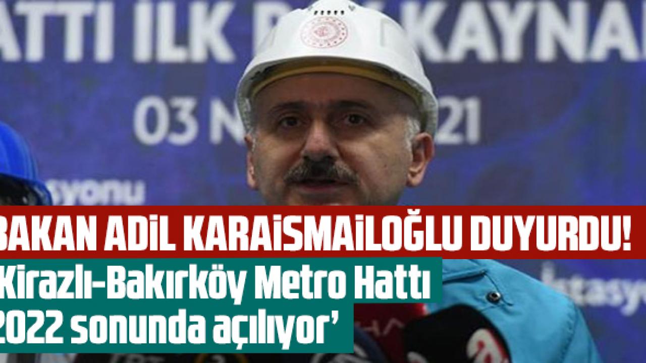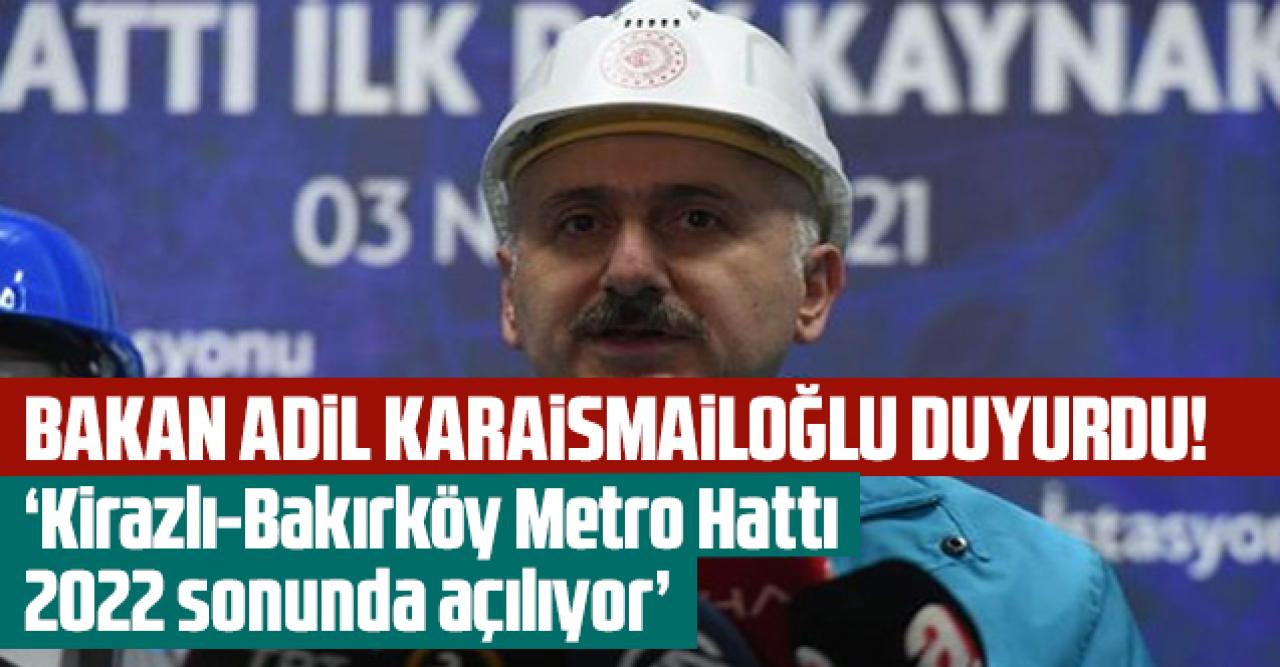 Kirazlı-Bakırköy Metro Hattı'nın açılışı ile ilgili de konuşan Ulaştırma ve Altyapı Bakanı Adil Karaismailoğlu, "2022 yıl sonu olarak tahmin ediyoruz çünkü orada yoğun bir çalışma var. Şehir merkezinden geçiyor, alttaki tünellerde farklı mühendislik metotlar uyguladık. Ama işi çözdük, şimdi rayında ilerliyor" dedi.