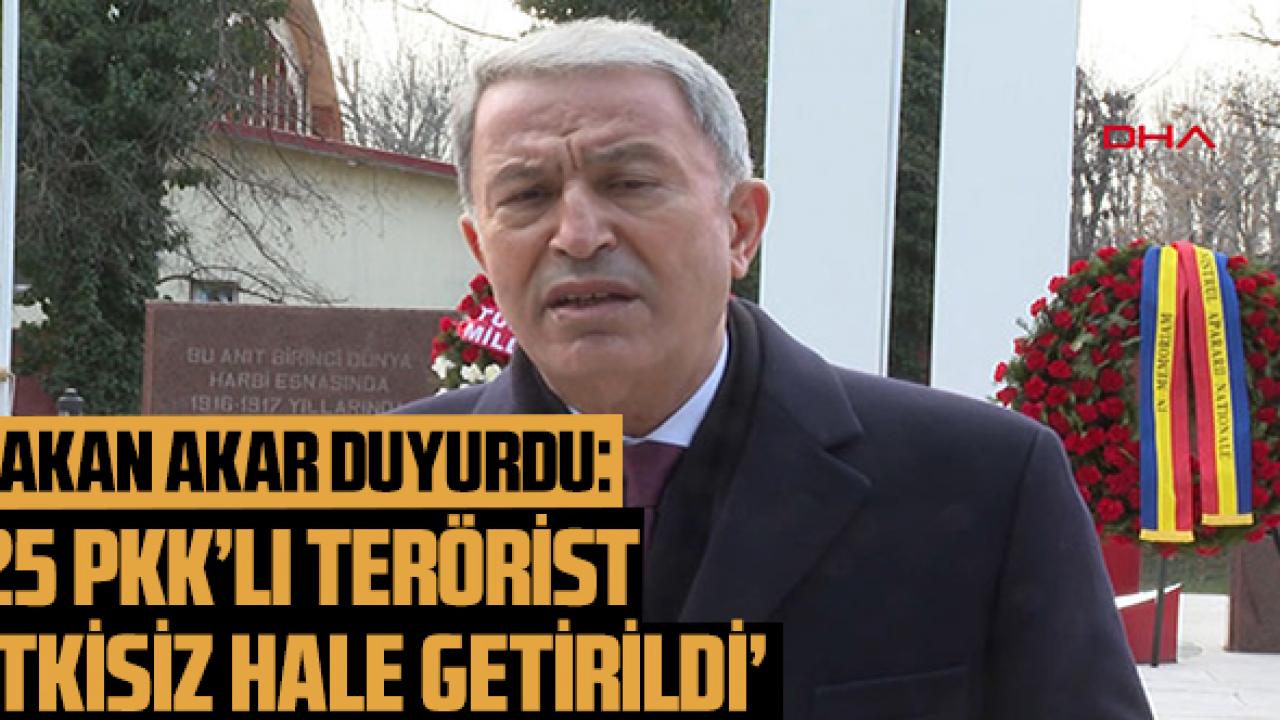Terör örgütlerine karşı yapılan operasyonların artan bir şiddet ve tempoda, en son terörist etkisiz hale getirilinceye kadar süreceğini söyleyen Akar, "En son teröristi etkisiz hale getirerek asil milletimizi terör belasından kurtaracağız. Bu konuda son derece azimli ve kararlıyız. Çalışmalarımız yoğun bir şekilde devam ediyor. Bu çerçevede en son Hakurk ve Kandil'e yapılan hava harekatında biri sözde lider kadrosundan olmak üzere 25 terörist etkisiz hale getirildi. Terör örgütü PKK'nın Kandil dahil hiçbir yerde kendini rahat hissedemeyeceğini söylemiştik. Teröristlerin kaçacak yeri kalmadı. Ülkemizin enerjisini tüketen terörü bitirmekte, 83 milyon halkımızı terör belasından kurtarmakta kararlıyız" diye konuştu.