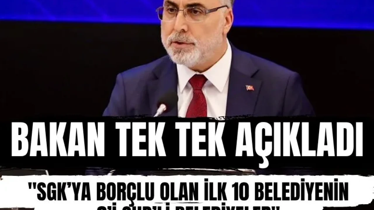 Çalışma ve Sosyal Güvenlik Bakanı Vedat Işıkhan, "Türkiye genelinde SGK’ya borçlu olan ilk 10 belediyenin 8’i Cumhuriyet Halk Partili belediyeler. Bakın 8’i Cumhuriyet Halk Partili Belediyelere aitken bir tanesi AK Partili Belediye’ye bir tanesi de Cumhuriyet Halk Partisi’ndeyken kayyum atanan Şişli Belediyesi’dir" dedi.