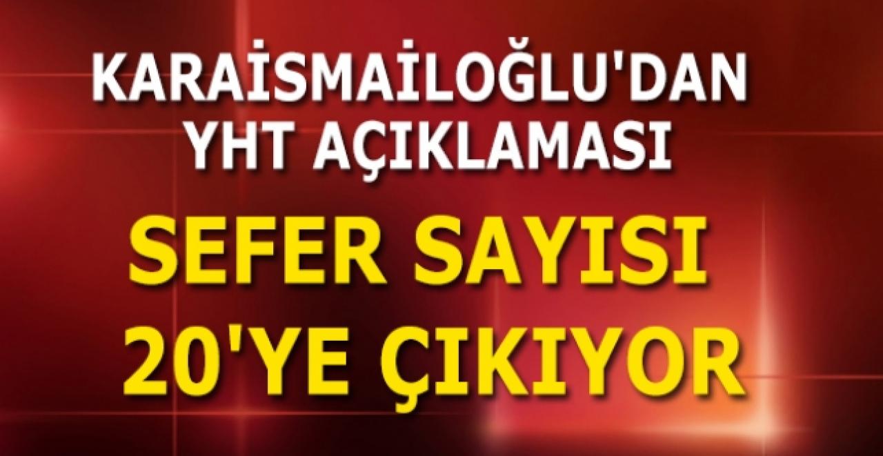 Ulaştırma ve Altyapı Bakanı Adil Karaismailoğlu, yazılı açıklamasında, yeni tip koronavirüse (Kovid-19) karşı alınan tedbirler kapsamında ara verilen YHT seferlerinin, 28 Mayıs'ta Ankara-İstanbul seferiyle başlatıldığını anımsatarak, normalleşme sürecinin hızla ilerlediğini bildirdi. Bilim Kurulunun tavsiyeleri doğrultusunda üst düzey önlemler alarak seferlerin devam ettiğini belirten Karaismailoğlu, özellikle toplu taşıma altyapısında alınan tedbirlerin virüsün yayılmasını önemli ölçüde azalttığını kaydetti.