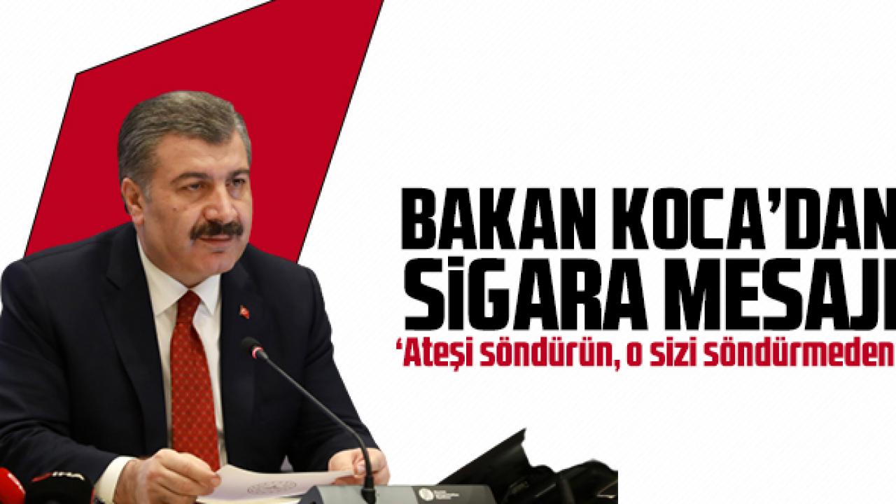 Bakan Koca, mesajında “Bugün 9 Şubat Dünya Sigarayı Bırakma Günü. Bugün siz de geleceğiniz için sağlıklı bir karar verebilirsiniz. Sevdiklerinizin kokusunu uzun yıllar ciğerlerinize çekebilmek için. Ateşi söndürün, o sizin hayatınızı söndürmeden. Sigara kullanımı, içinde bulunduğumuz pandemi sürecinde her zamankinden daha büyük risk taşıyor. Arkanızda gözü yaşlı insanlar bırakmayın, sigarayı bırakın” ifadelerine yer verdi.