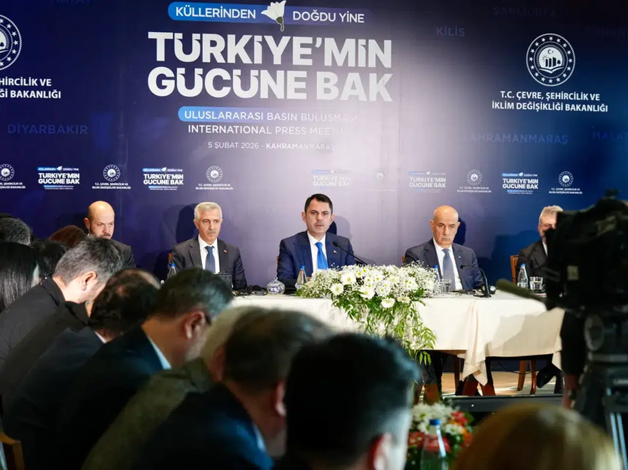 Cumhurbaşkanlığı İletişim Başkanlığı tarafından düzenlenen uluslararası medya programı kapsamında Kahramanmaraş’ta konuşan Bakan Murat Kurum, ABD’den Çin’e, Almanya’dan Azerbaycan’a 11 ülkeden yabancı basın mensuplarına deprem sonrası yürütülen yeniden inşa ve ihya sürecini tüm boyutlarıyla aktardı.
