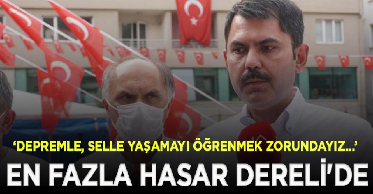"En fazla hasar Dereli ilçemizde oluştu, o andan itibaren tüm bakanlıklar üzerine düşen görevi yerine getirmek adına sahada fiilen gece, gündüz çalıştı. Bir seferberlik ruhu içinde çalışmaya gayret gösterdik. 7-8 günde Dereli’yi eski haline büyük oranda getirdik, altyapımız tamamen çalışıyor. İçme suyumuz verildi, kanalizasyon, yağmur suyu hatları onarıldı ve hayat burada normale dönmeye başladı. Sayın Cumhurbaşkanımız 2 gün önce buraya teşrif ettiklerinde biz, Giresun ve Dereli için yapılması gereken her türlü projeyi yapalım talimatını aldık. Biz de bu talimat çerçevesinde daha önce Karadeniz’e ilişkin İklim Değişikliği Eylem Planı’nı açıklamıştık. Bu kapsamda asıl olan dere güzergâhındaki yapıların kaldırılması, taşkın riski altındaki yapıların kaldırılması, bu alanların peyzaj ve yol düzenlemeleriyle parklarla meydanlarla yaşanabilir alanlar haline dönüştürülmesi sürecinde projelerimizi geliştiriyoruz. Yeni Dereli’yi inşa etmek adına çok önemli adım atıyoruz. Şehir merkezinde dere taşkın kotu atında kalan ne kadar yapı varsa bunları kaldırarak, taşkın kodunun üzerinde bir kod belirleyerek, yeniden inşa edilecek çalışmalarımızı başlattık. Yeni konut ve dükkan yapmak suretiyle projeyi başlatmış olduk. Dereli’de bu projeyi gerçekleştirdiğimizde inanın bu bölgeden geçen herkes, 'Ne güzel bir ilçe, ne güzel bir dere' diyecek. Bu proje Karadeniz mimarisine uygun yapılacak."