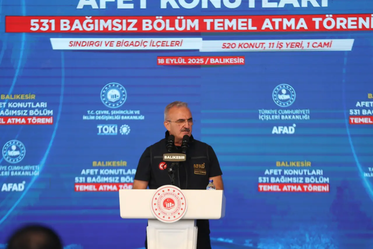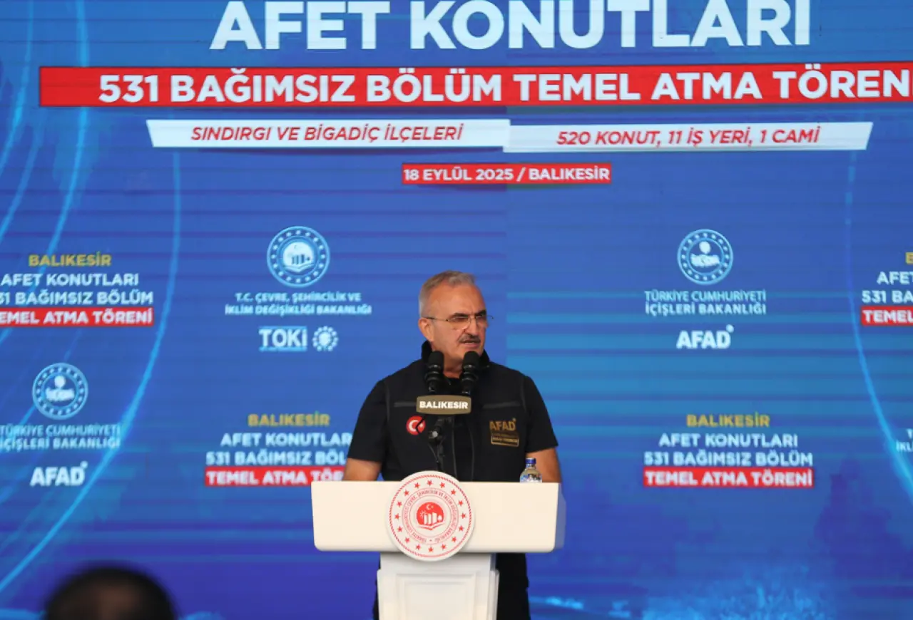 Çevre, Şehircilik ve İklim Değişikliği Bakanı Murat Kurum, Balıkesir’in Sındırgı ilçesinde 10 Ağustos’ta meydana gelen 6,1 büyüklüğündeki depremin ardından yapılacak kalıcı afet konutlarının temel atma töreninde önemli açıklamalarda bulundu.