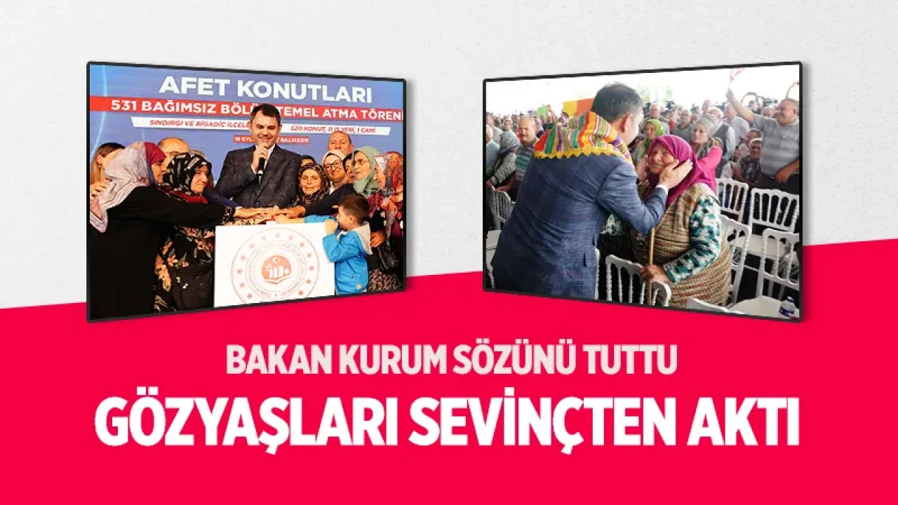Deprem sonrası yaptığı ziyaretle bölge halkının yanında olduğunu hissettiren Bakan Kurum, temel atma töreninde yine tanıdık yüzlerle buluştu. Gözyaşlarıyla “İsterse bir hasırın üstü olsun, yeter ki bir evimiz olsun” diyen 72 yaşındaki Şükriye Evren, bu kez sevinçle Bakan Kurum’un elini tuttu. O anlarda Kurum’un ona dönerek söylediği tek cümle, törene damga vurdu: