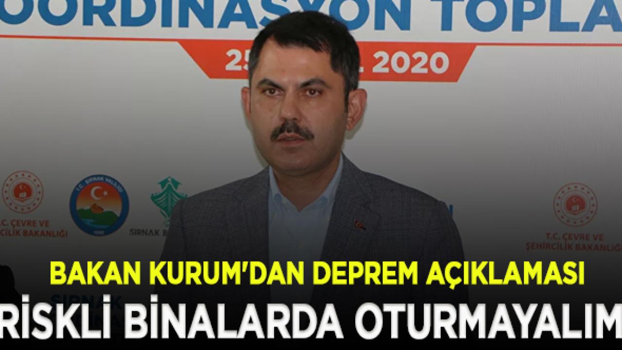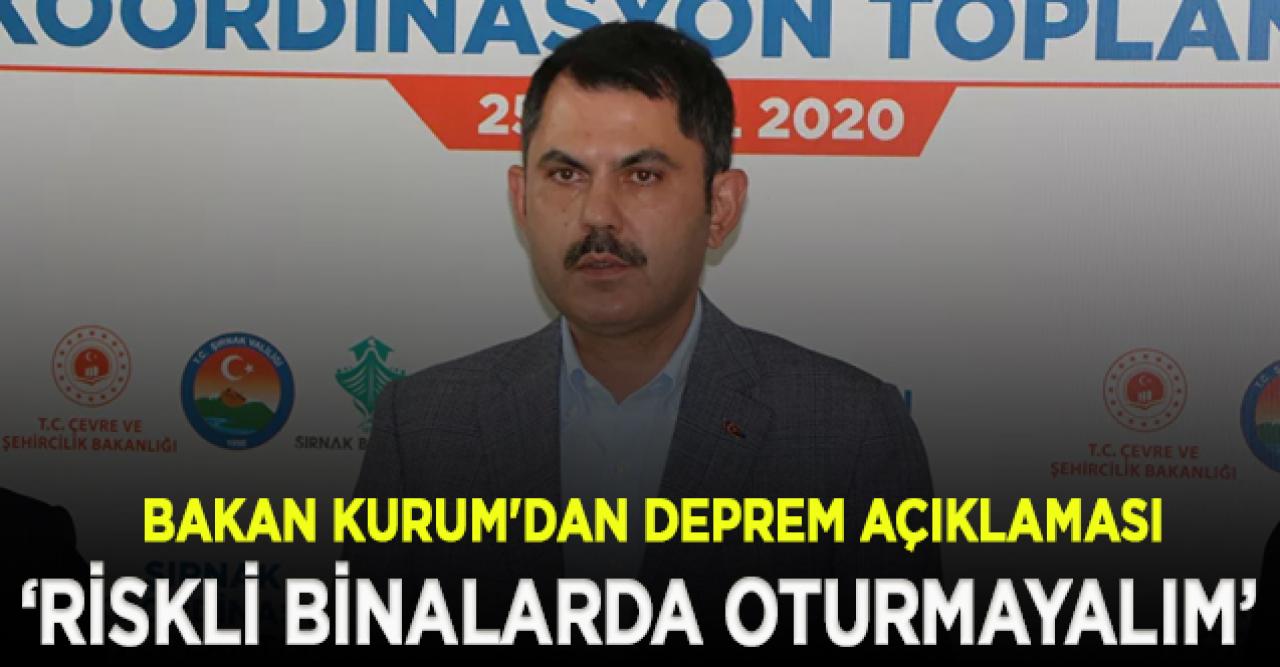 Bakan Kurum, dün İstanbul'da meydana gelen 4.2 büyüklüğündeki depreme ilişkin yaptığı değerlendirmede Kurum, "İstanbul'da beklenen depreme ilişkin dün bir deprem yaşadık. Bugün Şırnak'ta bu mesajı vermek de önemli, deprem, terör kadar tehlikelidir. Bu noktada biz Türkiye olarak nüfusumuzun yüzde 70'i deprem bölgesinde yaşıyoruz. Bu konuda bugüne kadar çok önemli adımlar attık. Yapmamız gereken birçok proje var. Bakanlık olarak bir hedef ortaya koyduk. Önümüzdeki 5 yıllık süreç içerisinde 1,5 milyon konutun acil dönüşümünü yapacağız. Bunun merkezi İstanbul'dur. İstanbul'da bütün ekiplerimizle birlikte çalışmalarımızı yürütüyoruz. Hemen hemen her ilçemizde projemiz var. Acil öncelikli dediğimiz alanların dönüşümünü sağlamak noktasında çalışmalarımızı hayata geçiriyoruz. Bu noktada vatandaşımıza bir kez daha duyurmak gerekirse riskli binalarda oturmayalım. Enkaz altında can aramak istemiyoruz. Gelin, bu noktada biz her türlü iş birliğine hazırız. Her türlü projeye destek vermeye hazırız. İnşallah kararlı bir şekilde şehirlerimizi depreme hazır hale getireceğiz" dedi.