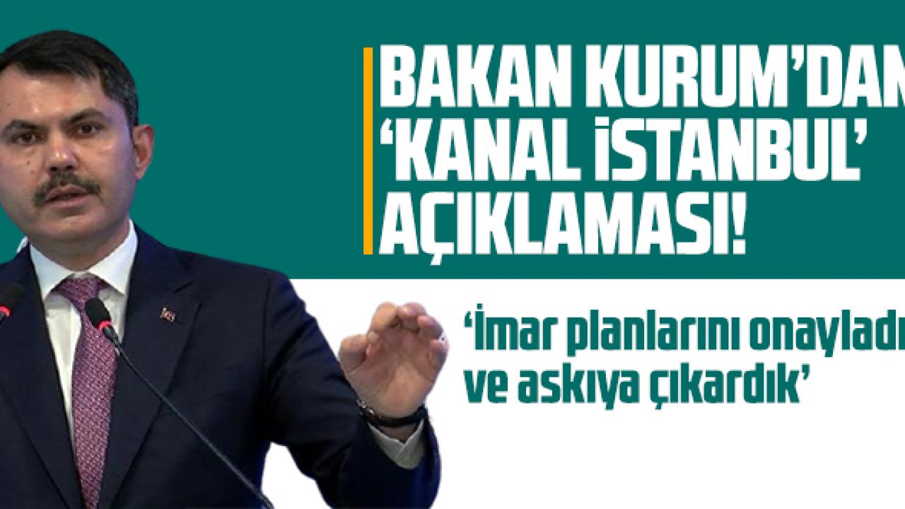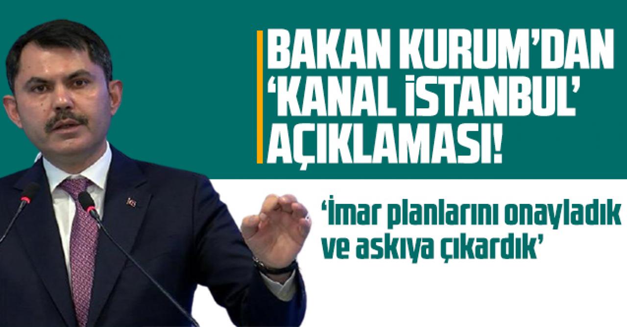 Bakan Kurum, , 'Kanal İstanbul Projesi için imar planlarını onayladık ve askıya çıkardık. Bu çerçevede adımlarımızı hızlı bir şekilde atarak Kanal İstanbul'u ülkemize, aziz şehrimize kazandıracağız' yazarak paylaştığı videoda Kanal İstanbul ile ilgili şunları söyledi:
