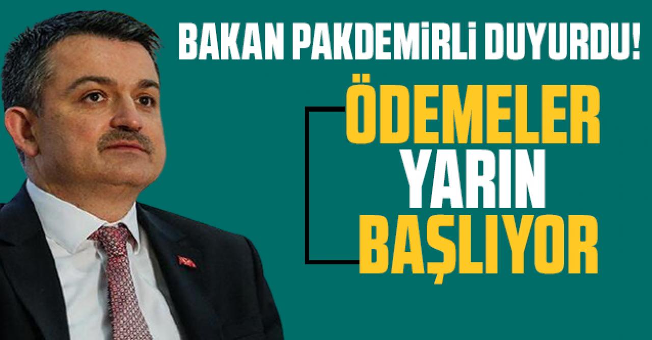 haberi duyuran Pakdemirli, "Mazot ve gübre desteğini yarın itibarıyla 81 ilimizde ödemeye başlayacağız. Toplam 2 milyon 103 bin 884 çiftçimize 4 milyar 79 milyon 656 bin 503 lira destek ödemesi yapacağız. Hayırlı ve bereketli olsun" dedi.
