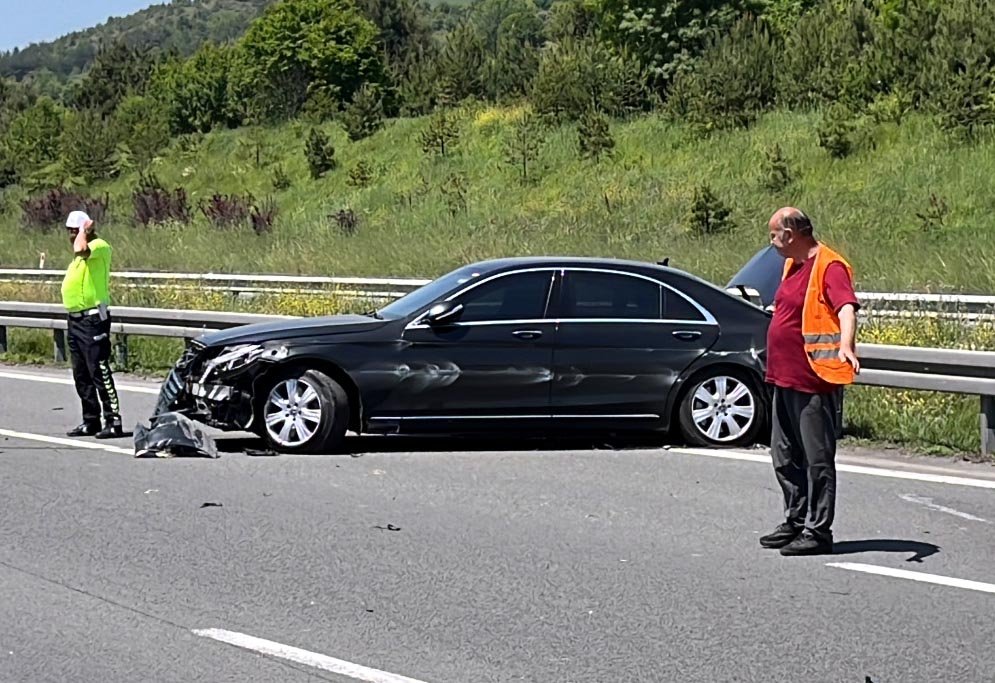 Çarpışmanın etkisiyle makam aracı, bariyerlere çarparak savruldu. Kaza sonrası ihbar üzerine olay yerine polis ve Karayolları ekipleri sevk edildi. 2 araçta hasar oluşurken, tutanak hazırlanmasının ardından araçlar yoldan kaldırıldı.