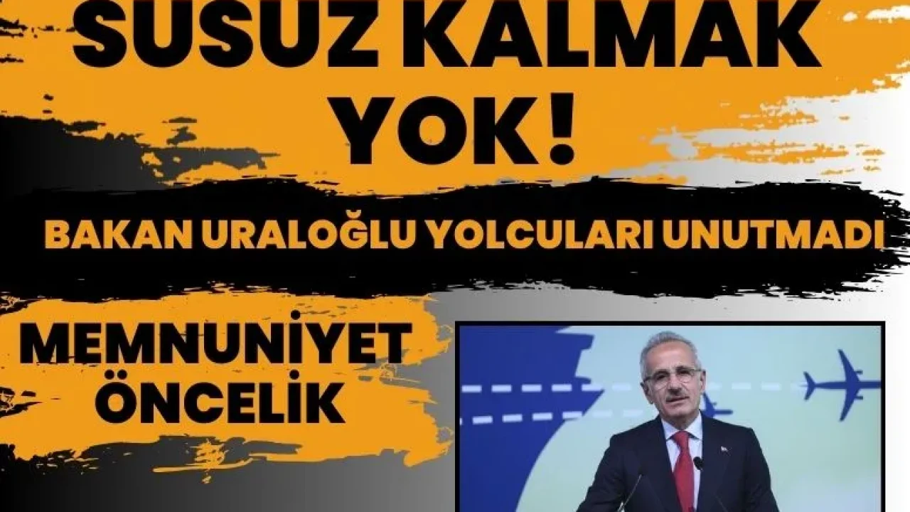 Bakan Uraloğlu, Sivil Havacılık Genel Müdürlüğü aracılığıyla tüm havayolu işletmelerine gönderilen talimatla, uçuş süresine bakılmaksızın her yolcunun ücretsiz su alabileceğini açıkladı.